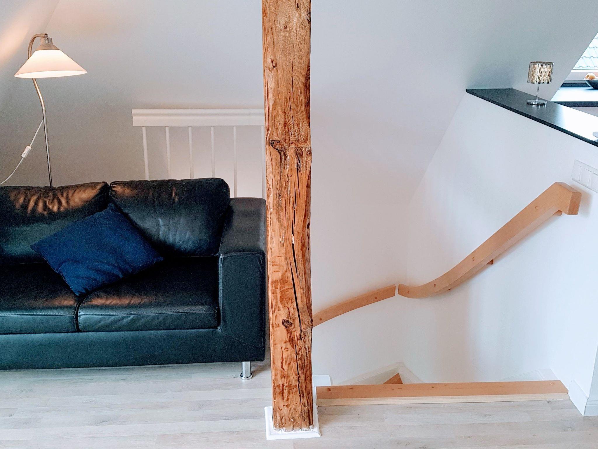 View over Sykeopen beams with modern elements and the latest technologycomfortable box-spring bed, futon in the loft's atticopen kitchen with high-quality dining area and cosy living arealarge, bright bathroom with open shower