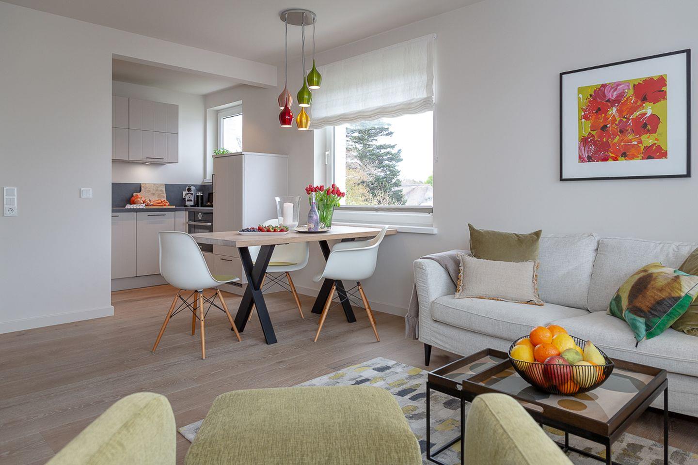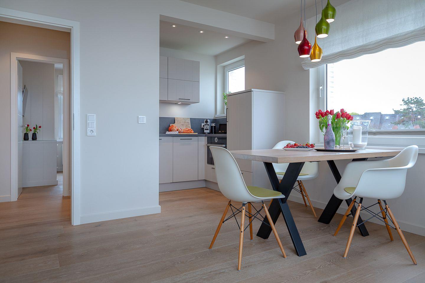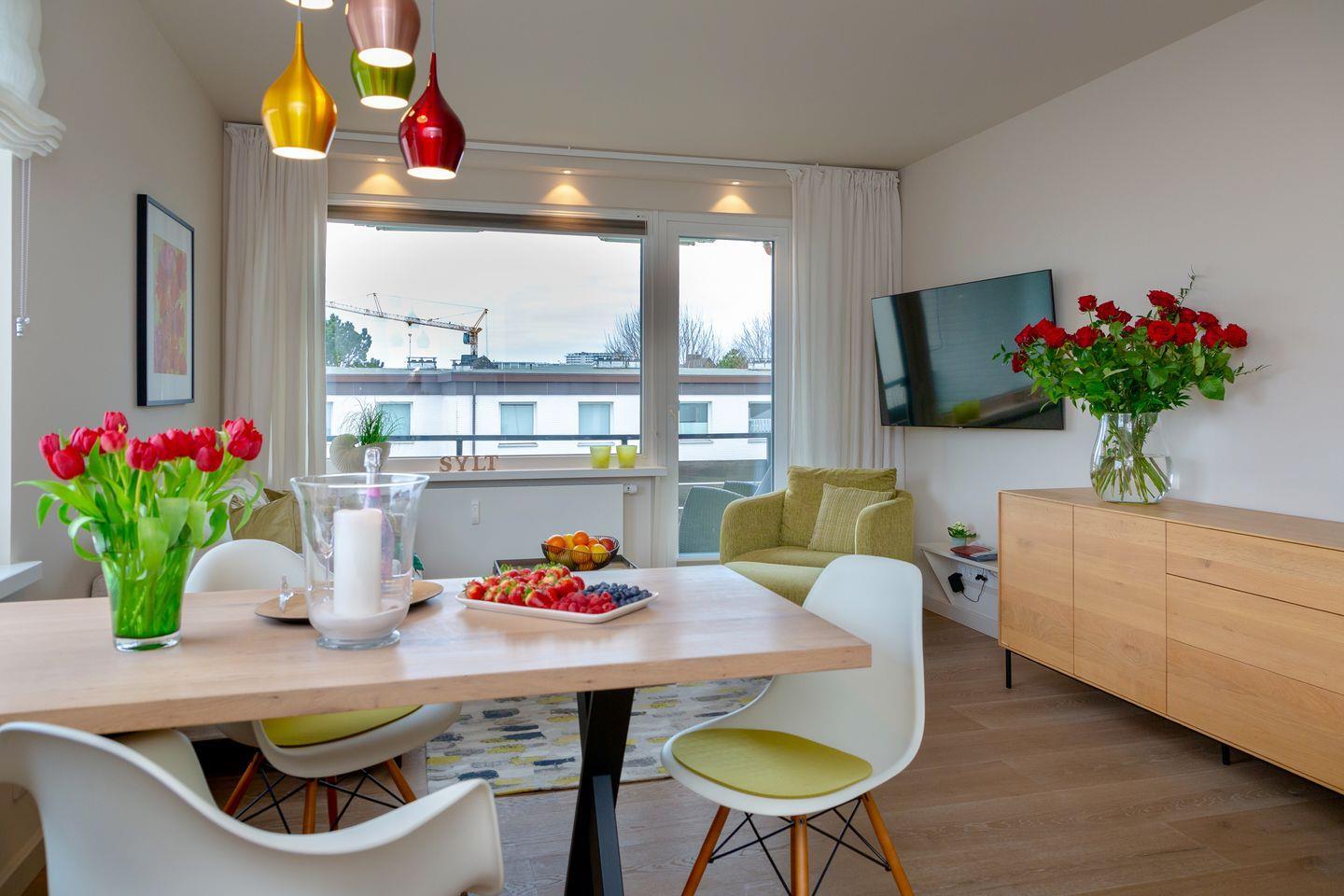 Freuen Sie sich auf dieses hochwertig eingerichtete Domizil, indem Sie sich buchstäblich wie „zu Hause“ fühlen werden. Lassen Sie sich von dem angenehmen Flair dieser Wohnung verzaubern und erleben Sie sowohl Entspannung als auch Geselligkeit im großzügigen Wohn/ und Essbereich. Von hier gelangen Sie auch auf Ihren, nach Western ausgerichteten, Balkon, auf dem Sie ungestört die sonnigen Zeiten Ihres Urlaubs genießen können. Hierzu stehen Ihnen bequeme Balkonmöbel zur Verfügung.