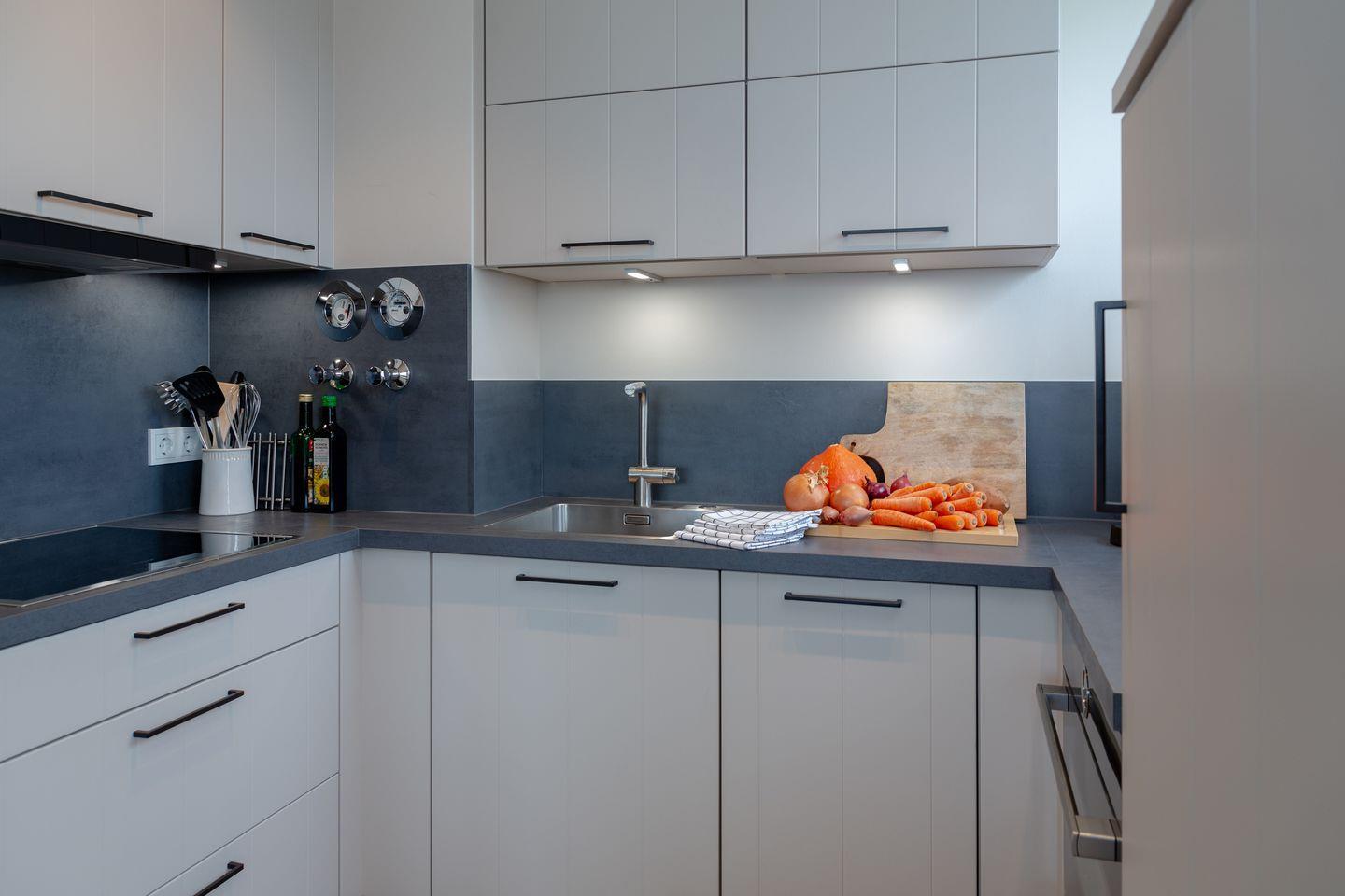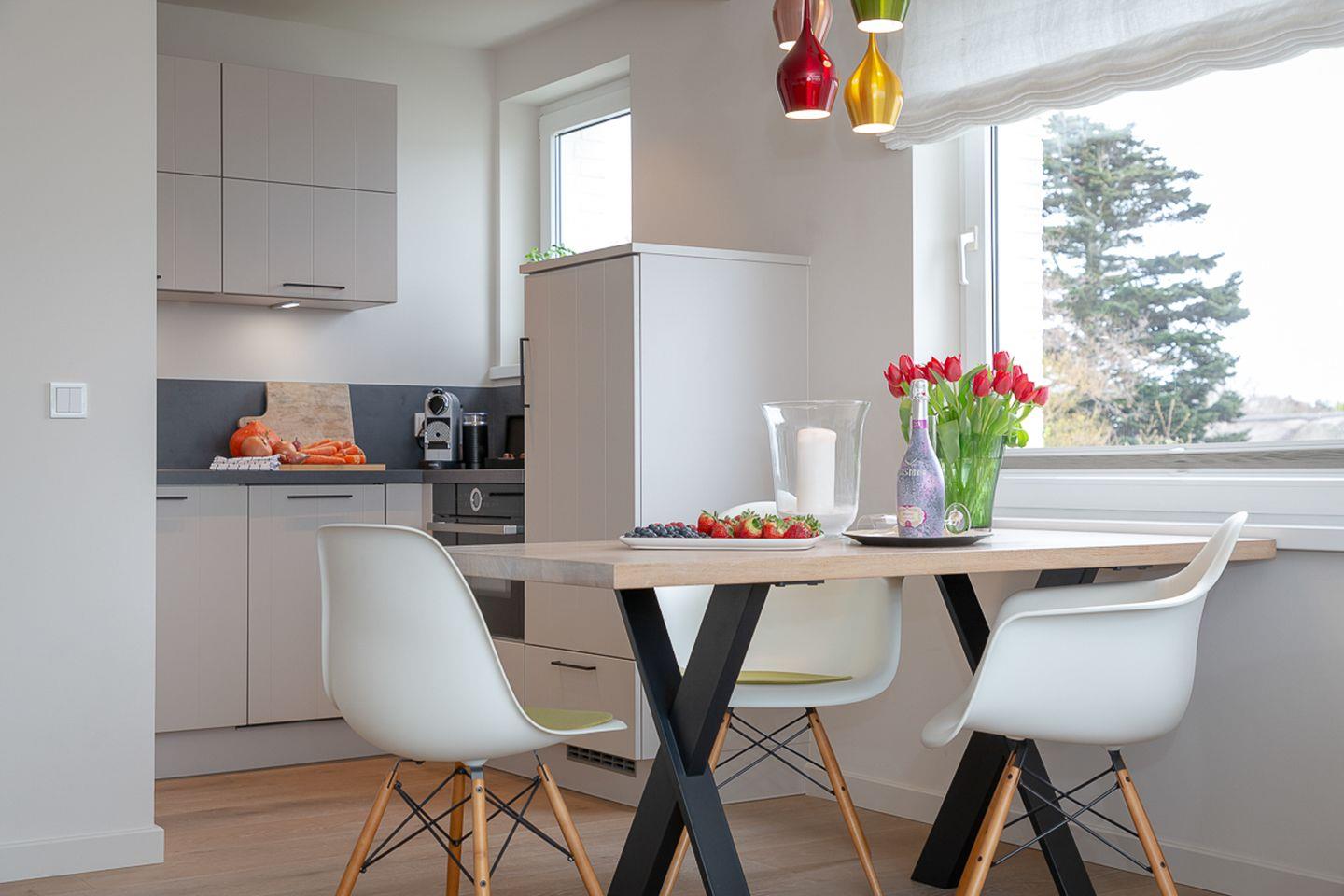 Die offene und hochwertig ausgestattete Küche bietet Ihnen alles, was Sie für die mühelose Selbstversorgung benötigen. Durch die exklusive Gestaltung wird das Kochen hier zum Vergnügen.