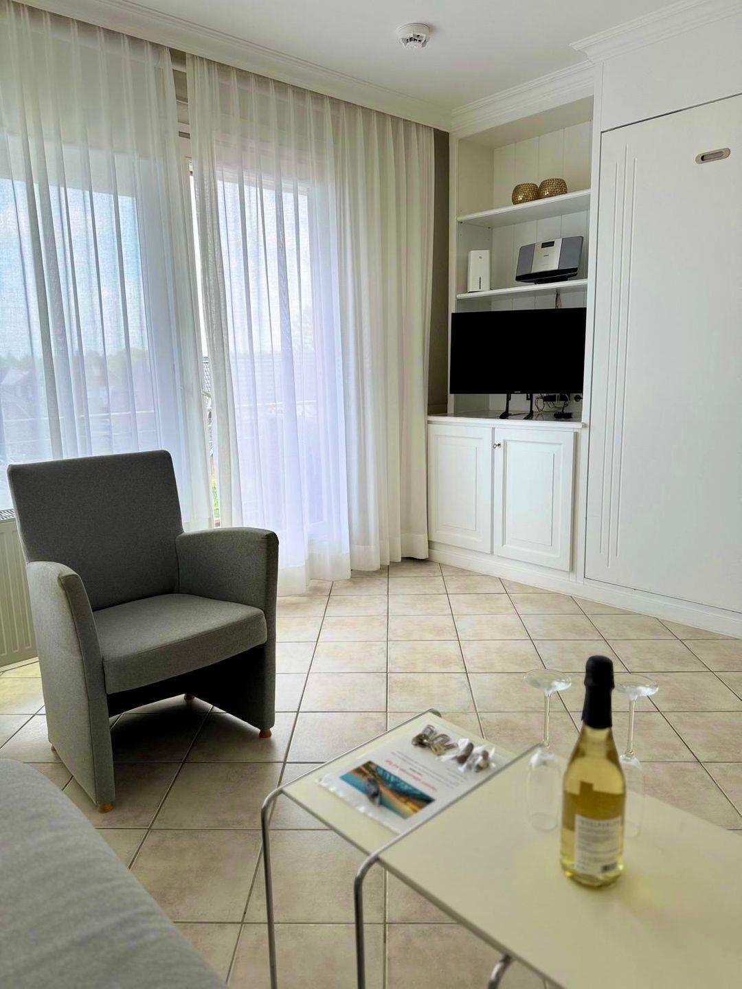 • Wohnzimmer: Doppel-Schrankbett, Sitzgruppe , Kabel-TV, HiFi-Anlage