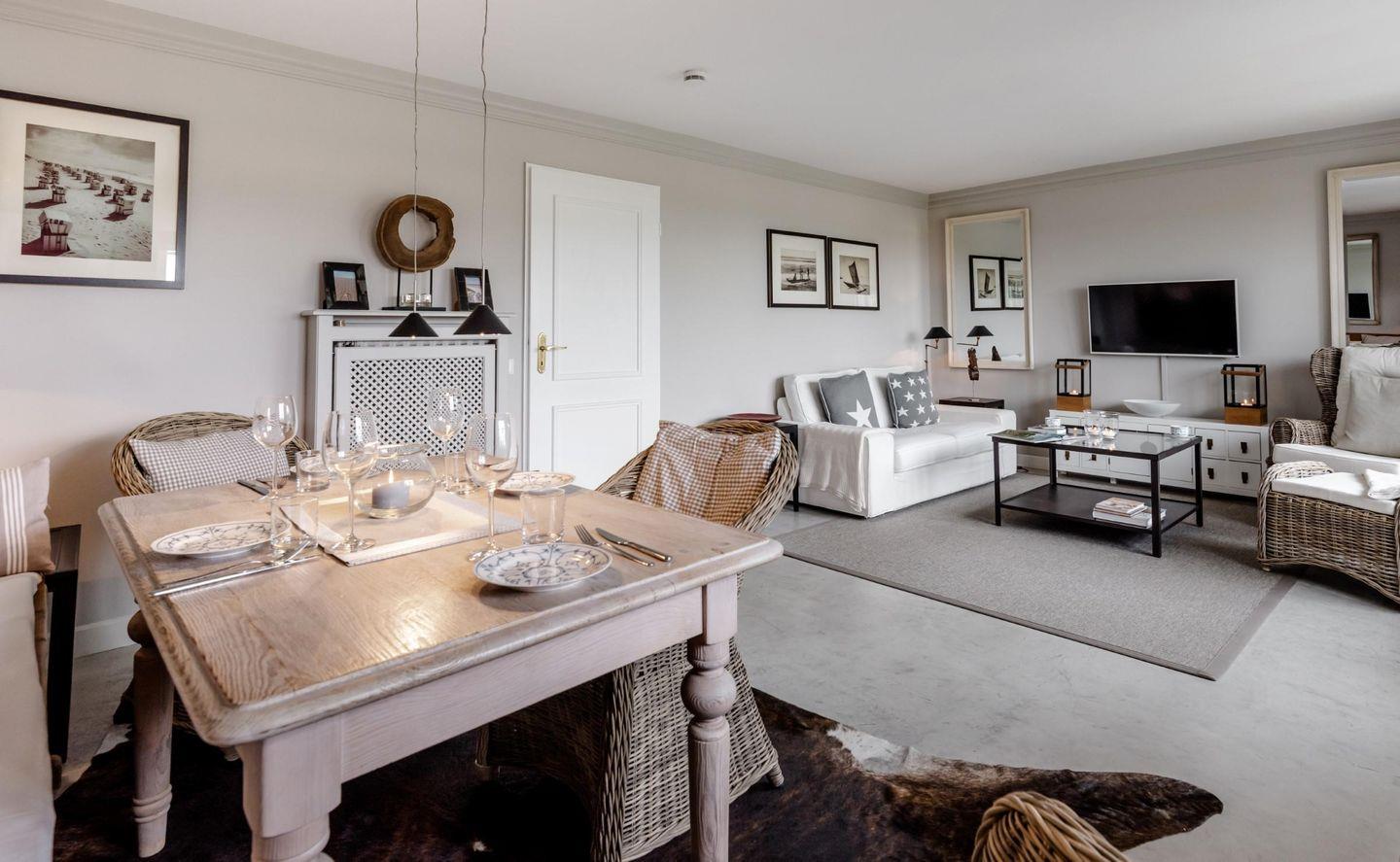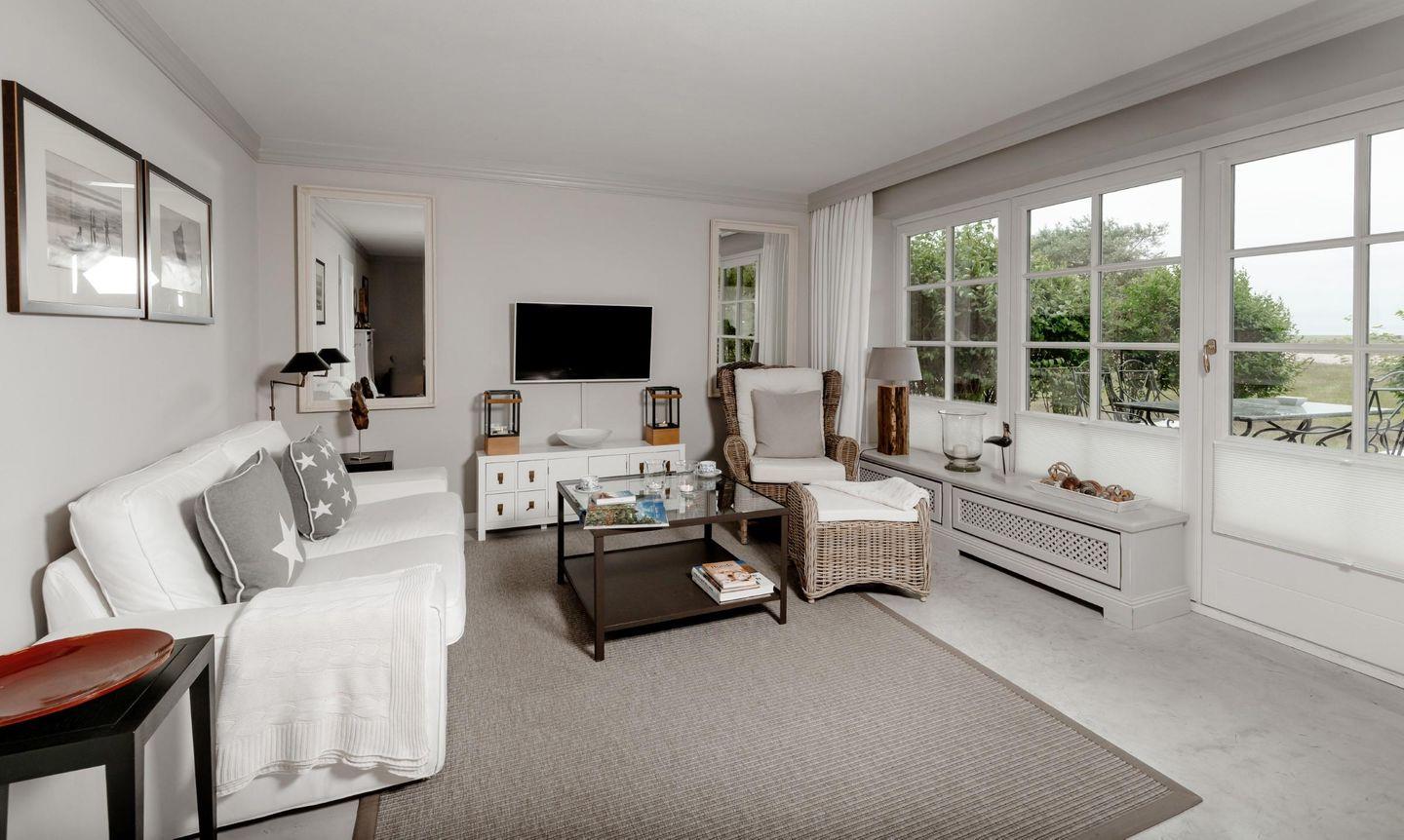 Schöne Erdgeschosswohnung mit herrlichem Weitblick! Warme Farben und eine liebevolle Einrichtung schaffen eine gemütliche und zugleich entspannte Atmosphäre. Die Wohnung hat zwei Schlafräume: ein Doppelzimmer und ein Einzelbettzimmer. Erleben Sie die Sylter Natur und die einzigartigen Himmelsbilder aus erster Reihe - egal ob von der Couch im Wohnzimmer aus oder beim Relaxen auf der großen Sonnenterrasse. Maximal ein Hund auf Anfrage ist gestattet.