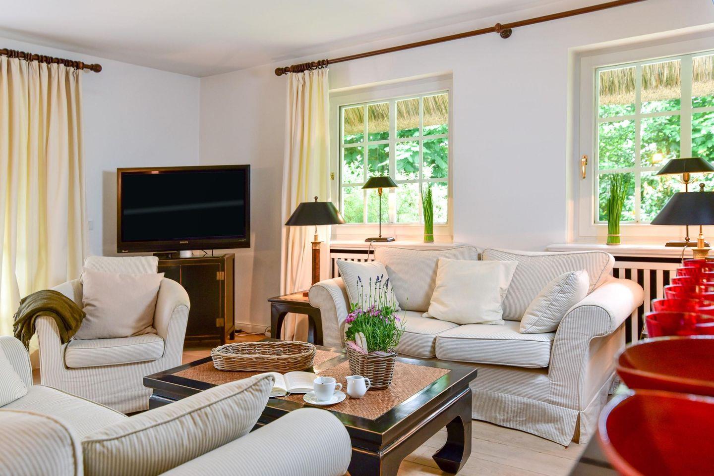 Idyllisch in schöner Ortsrandlage gelegen. Diese schöne Doppelhaushälfte besitzt Einzelhaus-Charakter. Hinter der Idylle des Friesenhauses verbirgt sich ein stilvoll und mit Liebe zum Detail gestaltetes Innenleben. Der Wohnbereich und auch das Hauptdoppelschlafzimmer sind sehr großzügig und lichtdurchflutet. Die sonnige Terrasse mit Südwest-Ausrichtung und der herrliche, großzügige Garten laden zum Ferienerlebnis der besonderen Art ein!