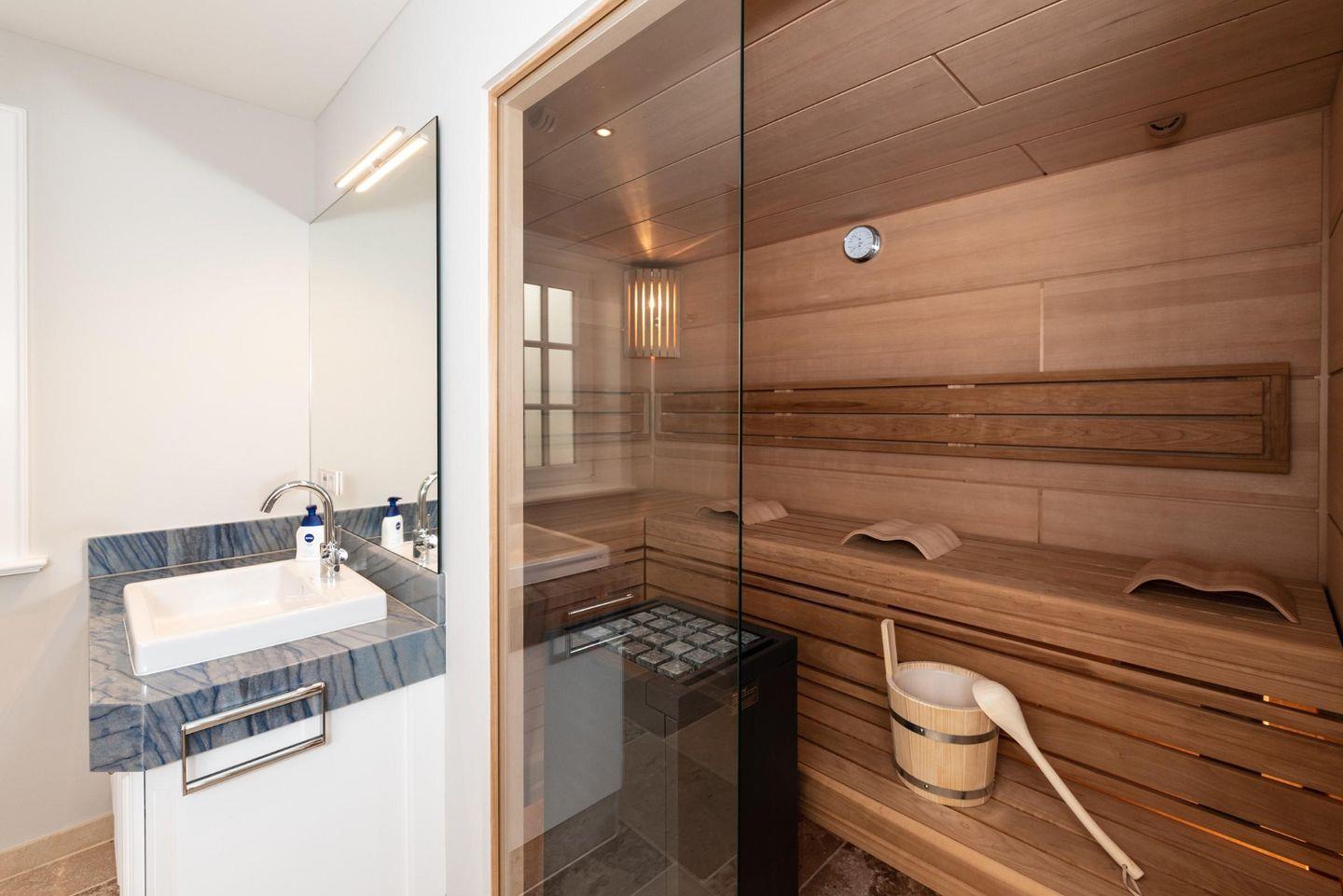 Großzügige Doppelhaushälfte unter Reet mit herrlichem Garten! Umgeben von hübschen Reetdachhäusern bietet Ihnen dieses Domizil jede Menge Platz und Komfort für die schönsten Tage im Jahr. Neben dem offenen Wohnzimmer mit Kamin und der hauseigenen Sauna mit separatem Ruheraum bilden die großen Sonnenterrassen im schön angelegten Garten ideale Rückzugsorte zum Entspannen. Natürliche Materialien wie z.B. Naturstein und Eichendielen verleihen dem Haus einen hochwertigen Charme, der sehr gut zur Insel Sylt passt. In dem Gartenhaus mit Lademöglichkeit für E-Bike's können Sie Ihre Fahrräder geschützt unterstellen. Der großzügig angelegte Parkplatz vor dem Haus bietet bis zu drei PKW ausreichend Platz. Maximal ein Hund auf Anfrage ist gestattet.