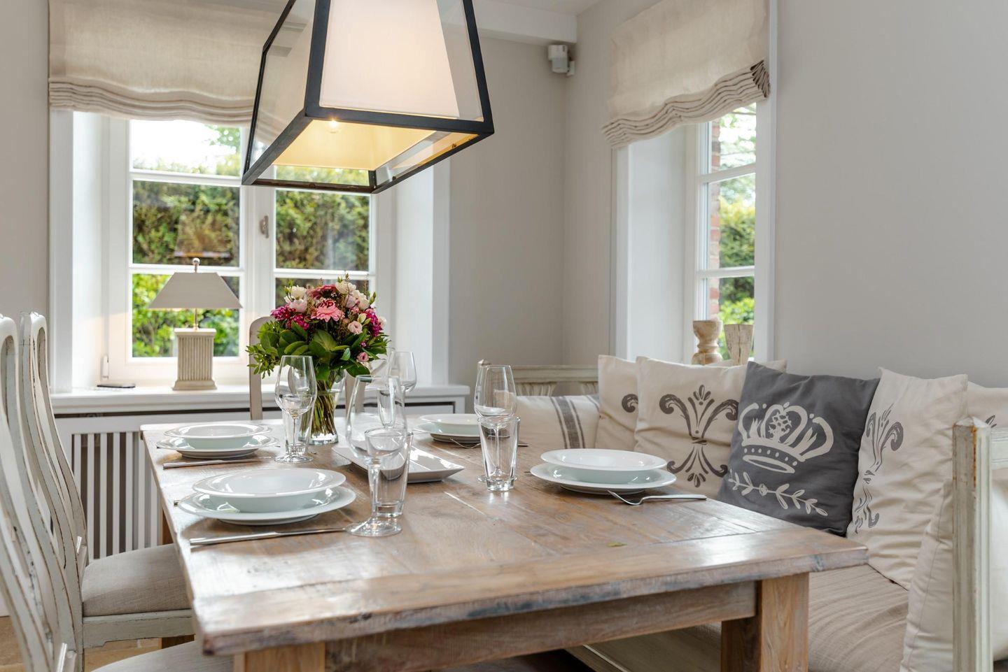 Diese traumhafte Doppelhaushälfte unter Reet bietet alles, was einen besonderen Sylt-Urlaub ausmacht. Die hellen Farben und die erlesene Materialauswahl, sowie bezaubernde Antiquitäten im Schweden-Stil verleihen den Räumen ein warmes und zugleich behagliches Ambiente.