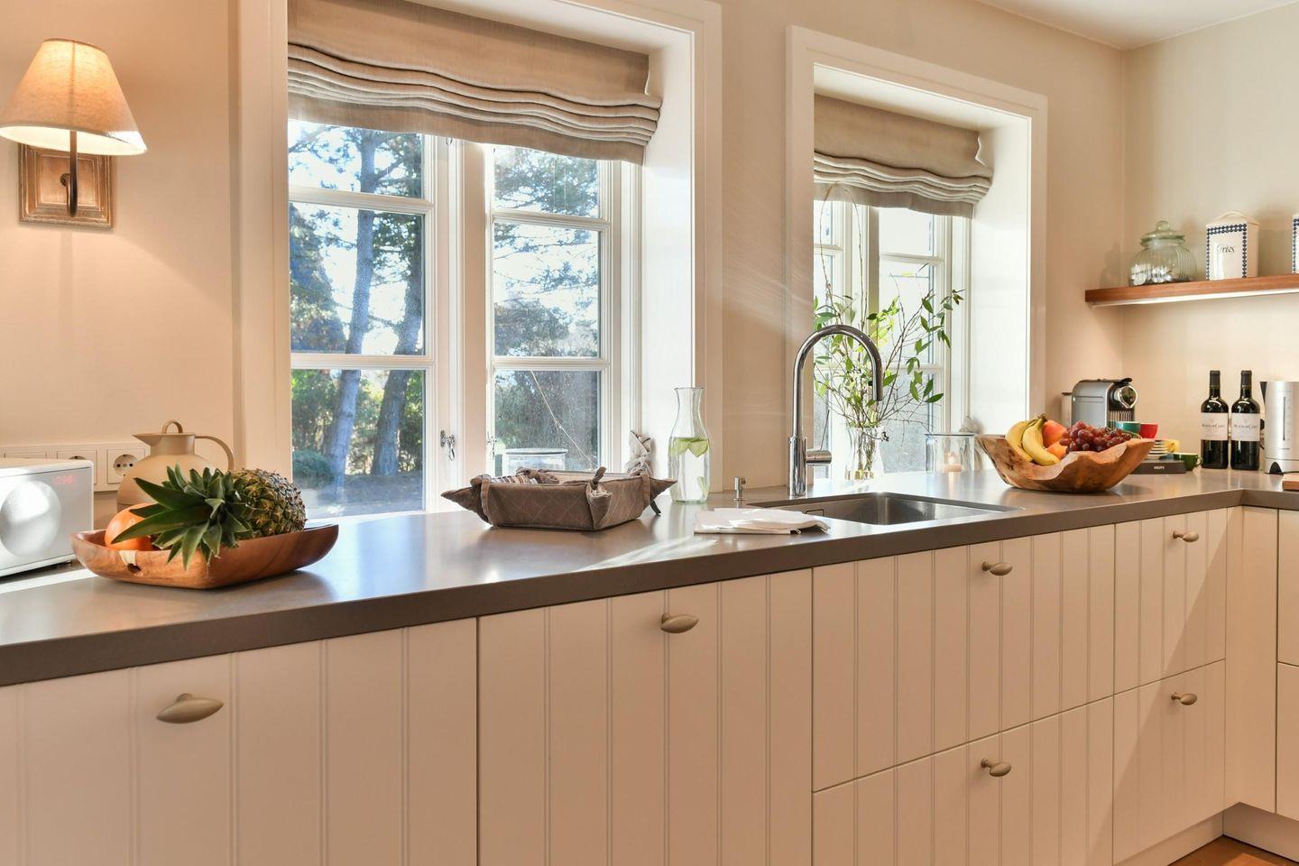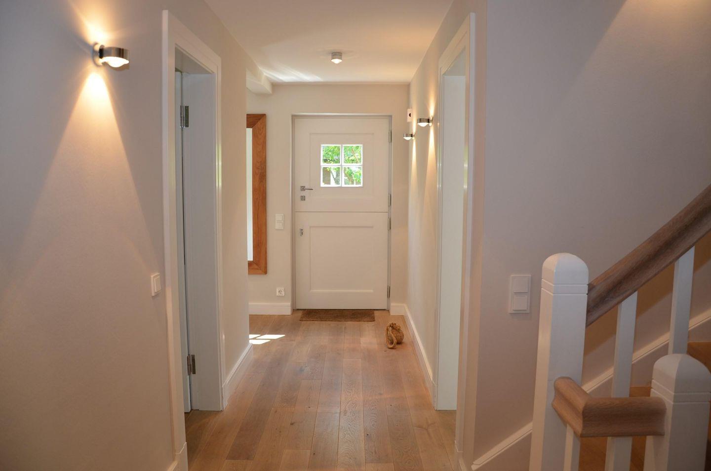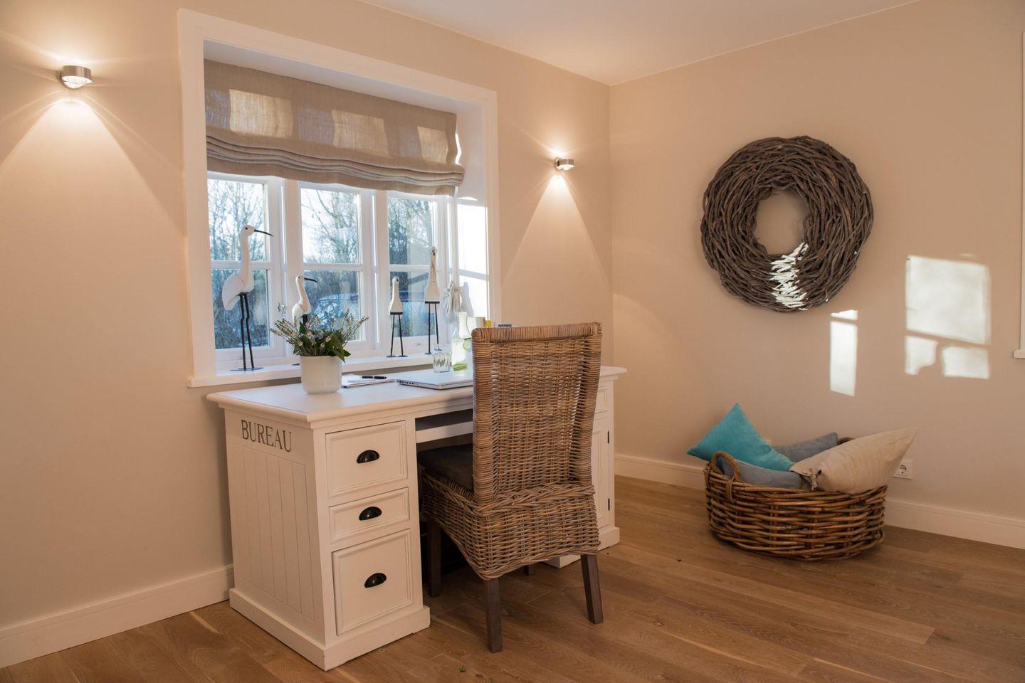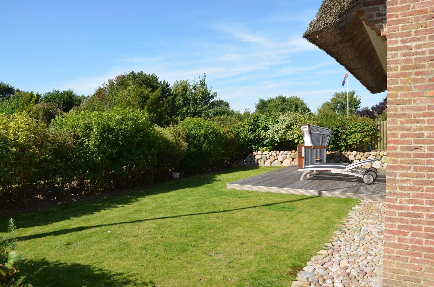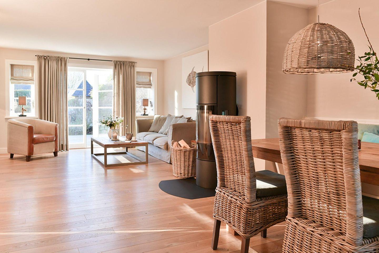 In diesem ruhig gelegenen Reetdachdoppelhaus im klassischen Friesenstil bleiben keine Wünsche offen! Die sehr gute Aufteilung bietet neben dem großzügigen Wohn-Essbereich auch ein separates Arbeitszimmer mit Schreibtisch vor dem Sprossenfenster mit Blick in den Garten. Für gemütliche Wärme sorgen die Fußbodenheizung und der charmante Kaminofen, der so positioniert ist, dass er optisch für eine harmonische Abgrenzung von Wohn- und Essbereich sorgt. Zwei große doppelflügelige Terrassentüren, eine nach Westen, die andere nach Osten, garantieren, dass Sie die Sonne vom Frühstück bis zum Abend genießen können. Vier Schlafzimmer und drei Duschbäder runden das großzügige Angebot komfortabel ab. Lassen Sie sich von dem modernen und hochwertigen Interieur bezaubern!