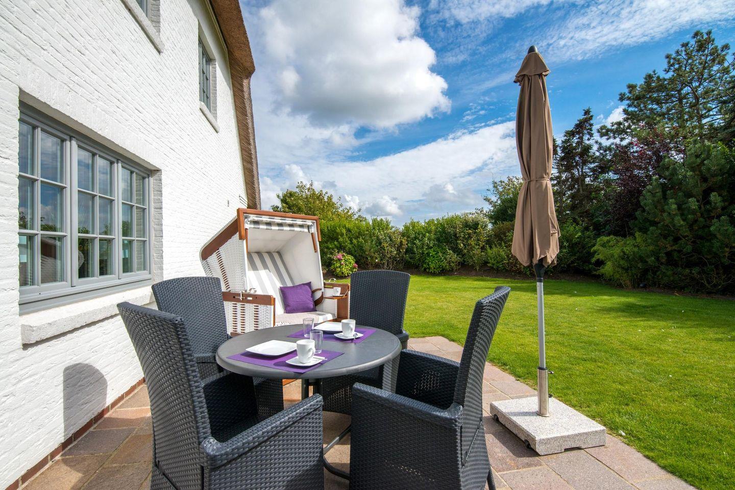 Die stilvoll eingerichtete Friesenhaushälfte nahe der Keitumer Deichwiesen lädt mit seinen hellen, offenen und sehr durchdachten Raumkonzept zum Wohlfühlen ein. Das Haus verfügt über zwei Doppelschlafzimmer und zwei Bäder, davon eins en suite. Der Saunabereich und der Kamin sorgen nach einem langem Spaziergang für wohlige Wärme und Entspannung. Im sehr gepflegten und herrlich eingewachsenen Garten mit Strandkorbplatz können Sie die Sonne genießen.