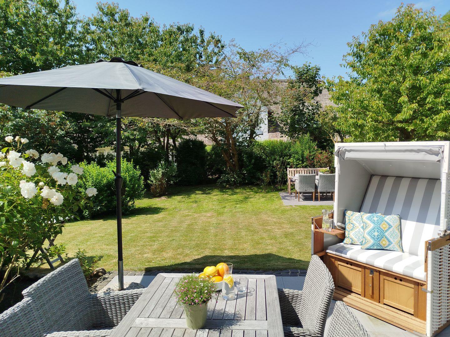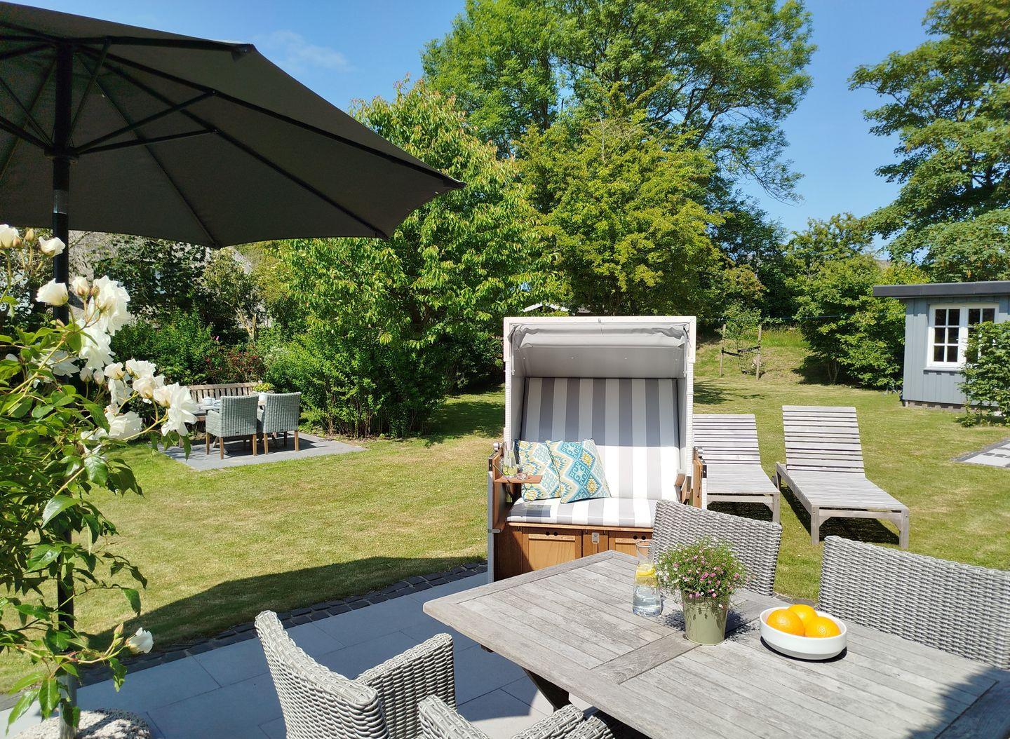 Bezauberndes Hausteil in zentraler und doch absolut ruhiger Lage. Frisch renoviert und stilvoll eingerichtet, umgeben von einem herrlich eingewachsenen Garten - eine wahre Oase inmitten von Keitum.