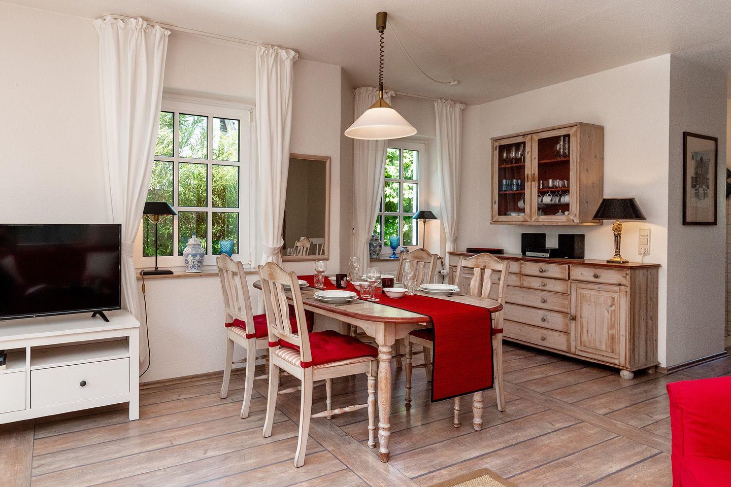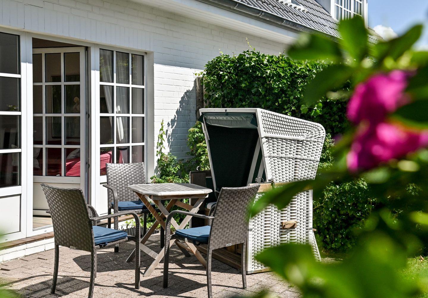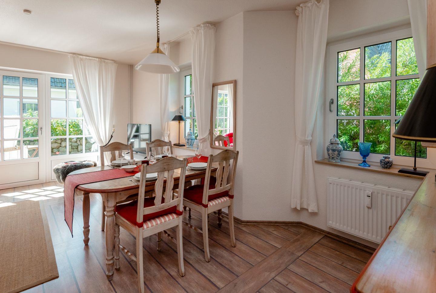 Gemütliche Ferienwohnung auf zwei Ebenen mit zwei Schlafzimmern und zwei Bädern, eins davon 2025 liebevoll saniert, in toller Lage. Der Wohn- Essbereich ist hell und offen gestaltet. Die Wohnung ist nur wenige Schritte vom Wanderweg zum Morsum Kliff entfernt. Vom Wohnzimmer aus gelangen Sie direkt auf Ihre eigene Südterrasse, auf der es sich herrlich entspannen lässt und der Start in einen neuen, tollen Tag mit einer Tasse Kaffee beginnt.