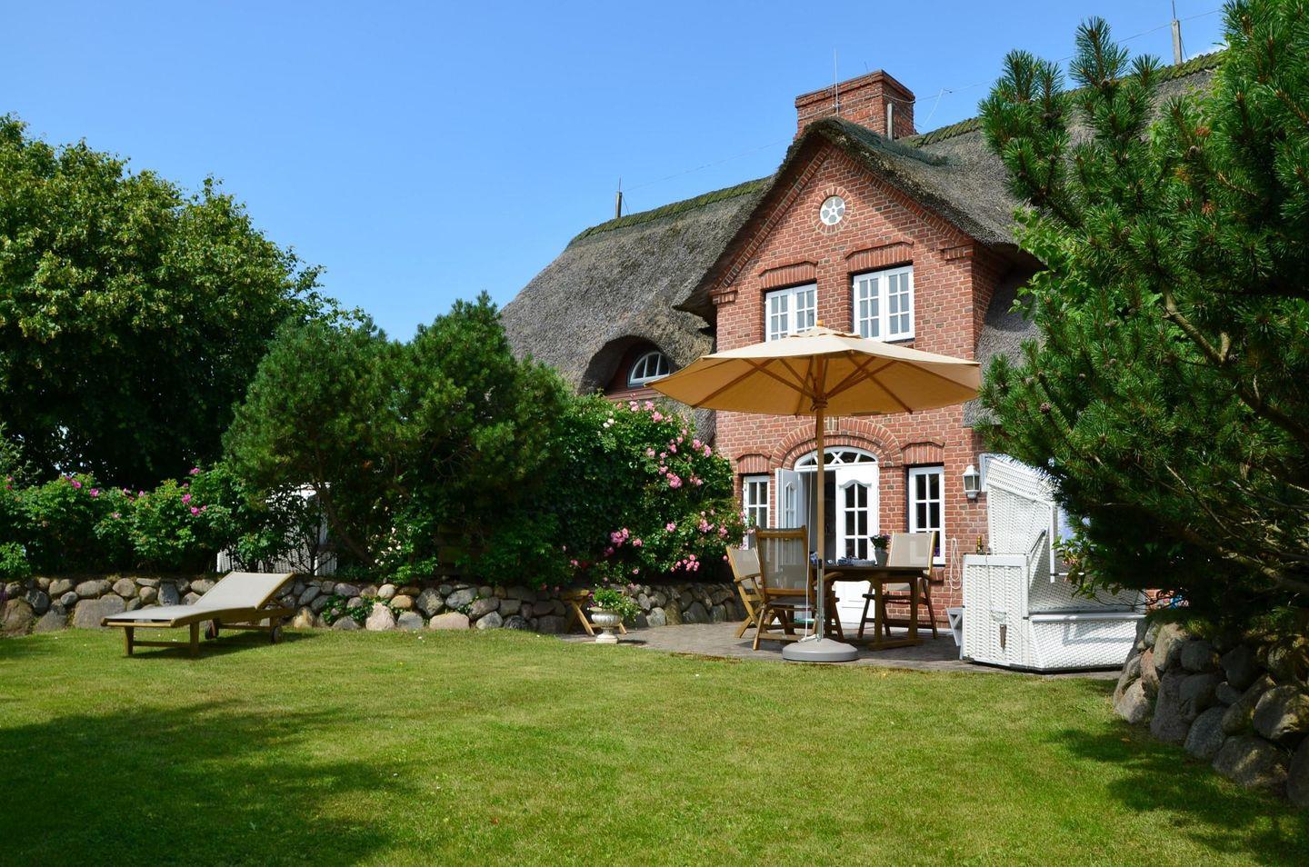 Gemütliches Reetdachhaus in ruhiger Lage. Etwas versteckt gelegen, unweit des Morsumer Wattenmeers, findet sich dieses hübsche Hausteil unter Reet. Hier lässt es sich herrlich entspannen. Ob vor dem offenen Kamin oder in der hauseigenen Sauna, die Erholung ist Ihnen garantiert. Vom Wohnzimmer aus haben Sie Zugang zur windgeschützten Südterrasse, von welcher Sie den herrlich eingewachsenen Garten genießen können.