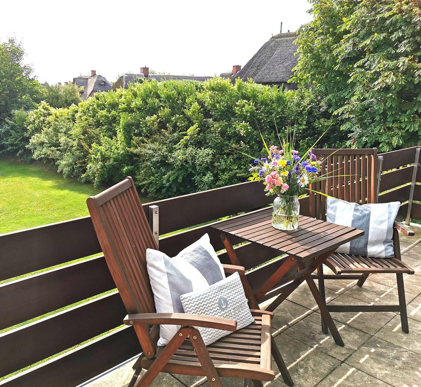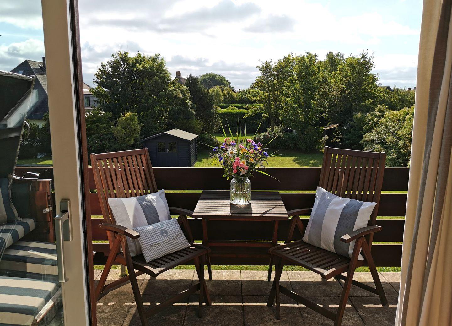 Eine erfrischend freundliche, helle und sehr gemütliche Ferienwohnung im Herzen von Morsum! Durch das große Panorama-Fenster im Wohnzimmer blicken Sie in den herrlich grünen Garten. Auf dem Balkon mit Strandkorb lässt sich sehr gut frühstücken oder entspannen. Die edle Nespresso-Maschine sorgt für den ersten Kaffee am Morgen für einen guten Start in einen großartigen Tag auf Sylt! Ein schöner Ort, um zur Ruhe zu kommen und ein guter Ausgangspunkt für lange Spaziergänge. Maximal ein Hund auf Anfrage ist gestattet.