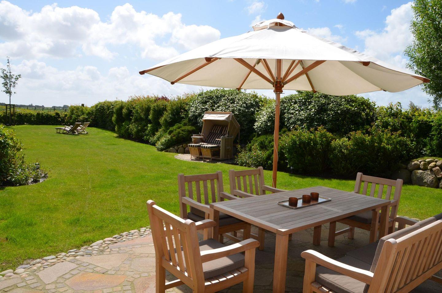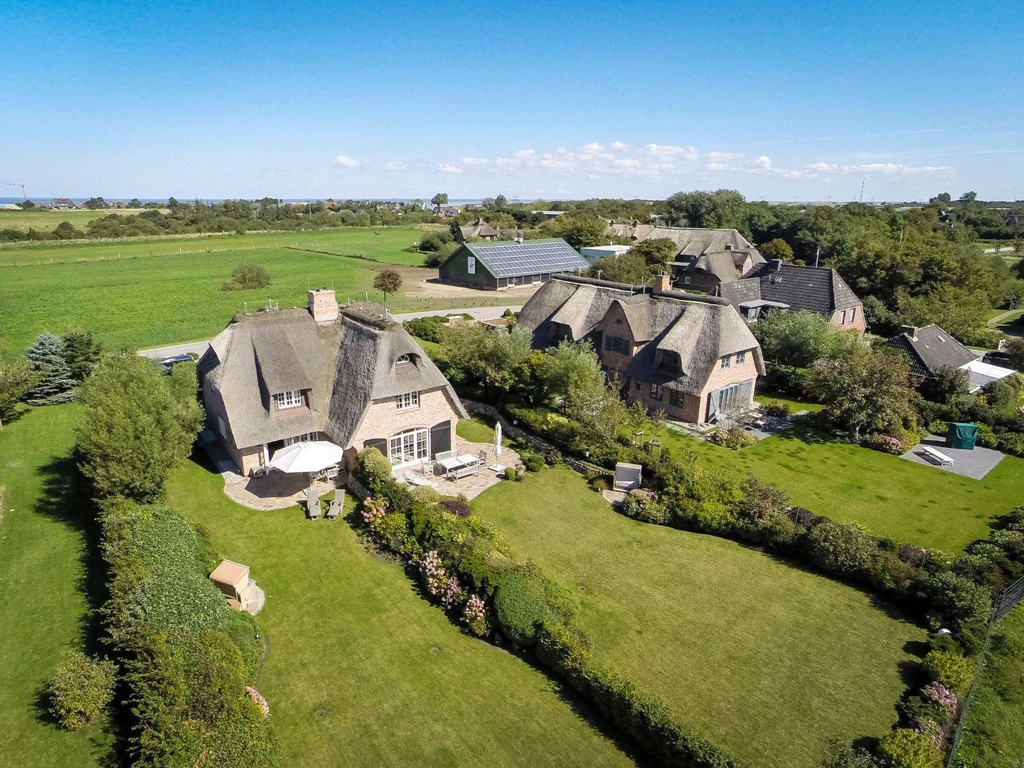 Wunderschöne Reetdachhaushälfte am Rand der Morsumer Wiesen. Stilvoll und farblich bis ins Detail abgestimmt, erleben Sie in diesem Friesenhaus ein Wohnerlebnis der besonderen Art. Edle Materialien und hochwertige Tischlereinbauten unterstreichen das heimische Gefühl, dass sich einem beim Betreten der Räumlichkeiten eröffnet. Vor dem offenen Kamin, in der Sauna oder auf den geschützten Südterrassen kann man hervorragend Relaxen.