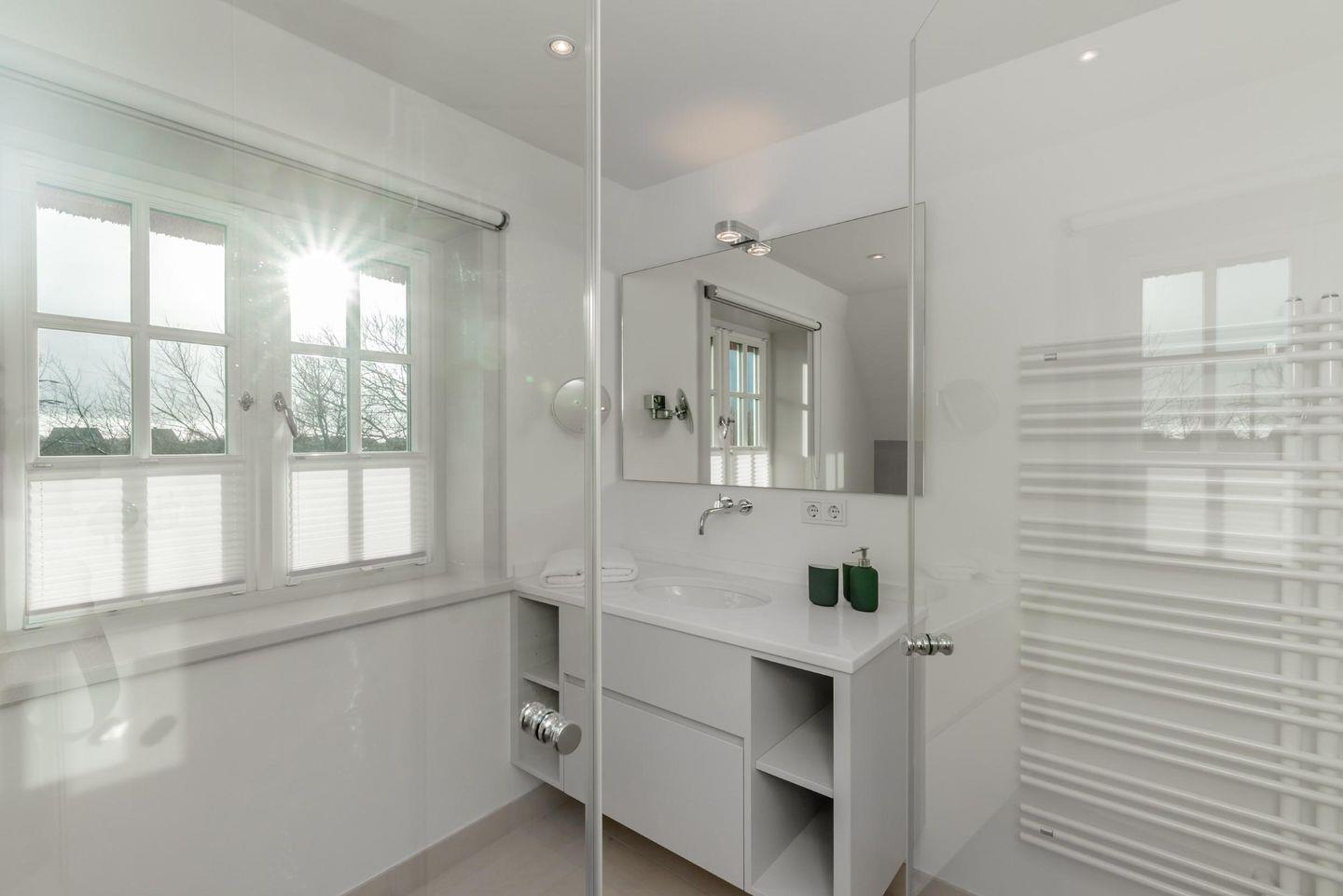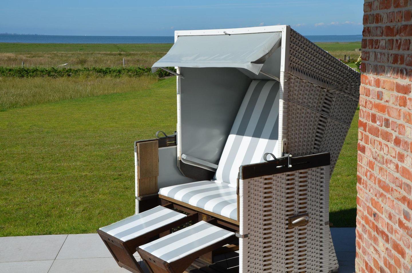 Neubau unter Reet mit freiem Blick aufs Wasser. Großzügig geschnittene Räume, hochwertige Tischlereinbauten und Möbel, ein heller und freundlicher Naturstein aus Frankreich, auf Sylt von Hand nachbearbeitet und antike Fliesen laden zu jeder Jahreszeit ein zum Entspannen und Träumen. Der knisternde Kamin und die hauseigene Sauna sorgen in der kühleren Jahreszeit für warme und gemütliche Stunden in Ihrem Domizil. Aus den meisten Räumen und von den großen Terrassen aus genießen Sie einen spektakulären Blick auf die Wattwiesen, das Wattenmeer und die Keitumer Bucht. Maximal ein Hund auf Anfrage ist gestattet.