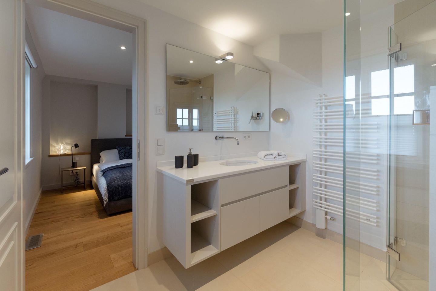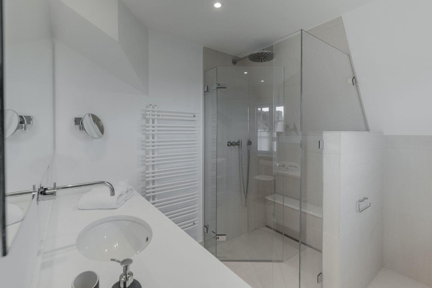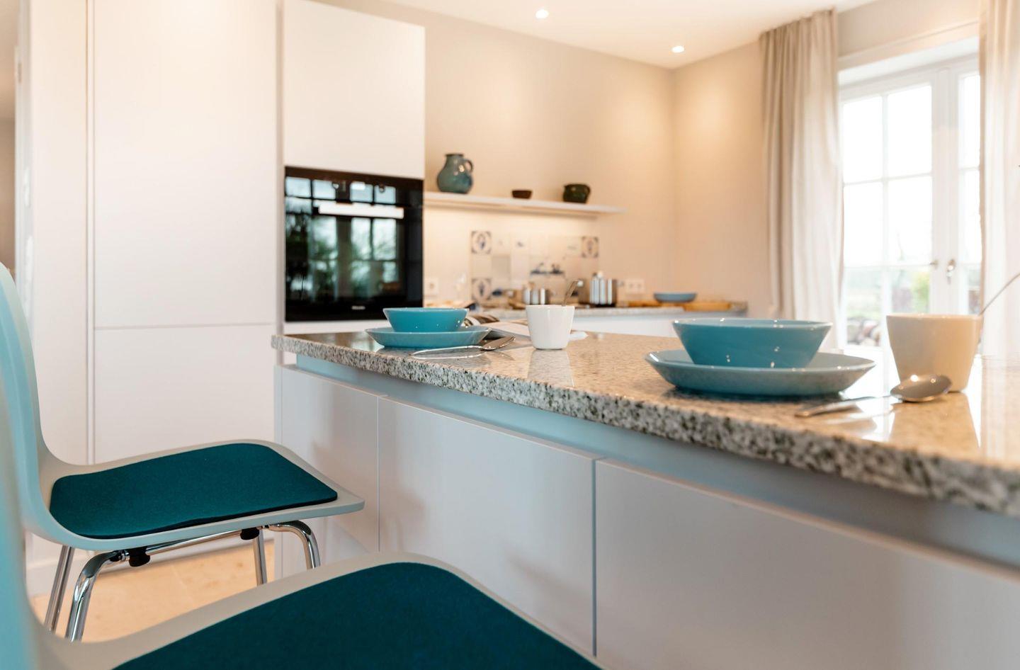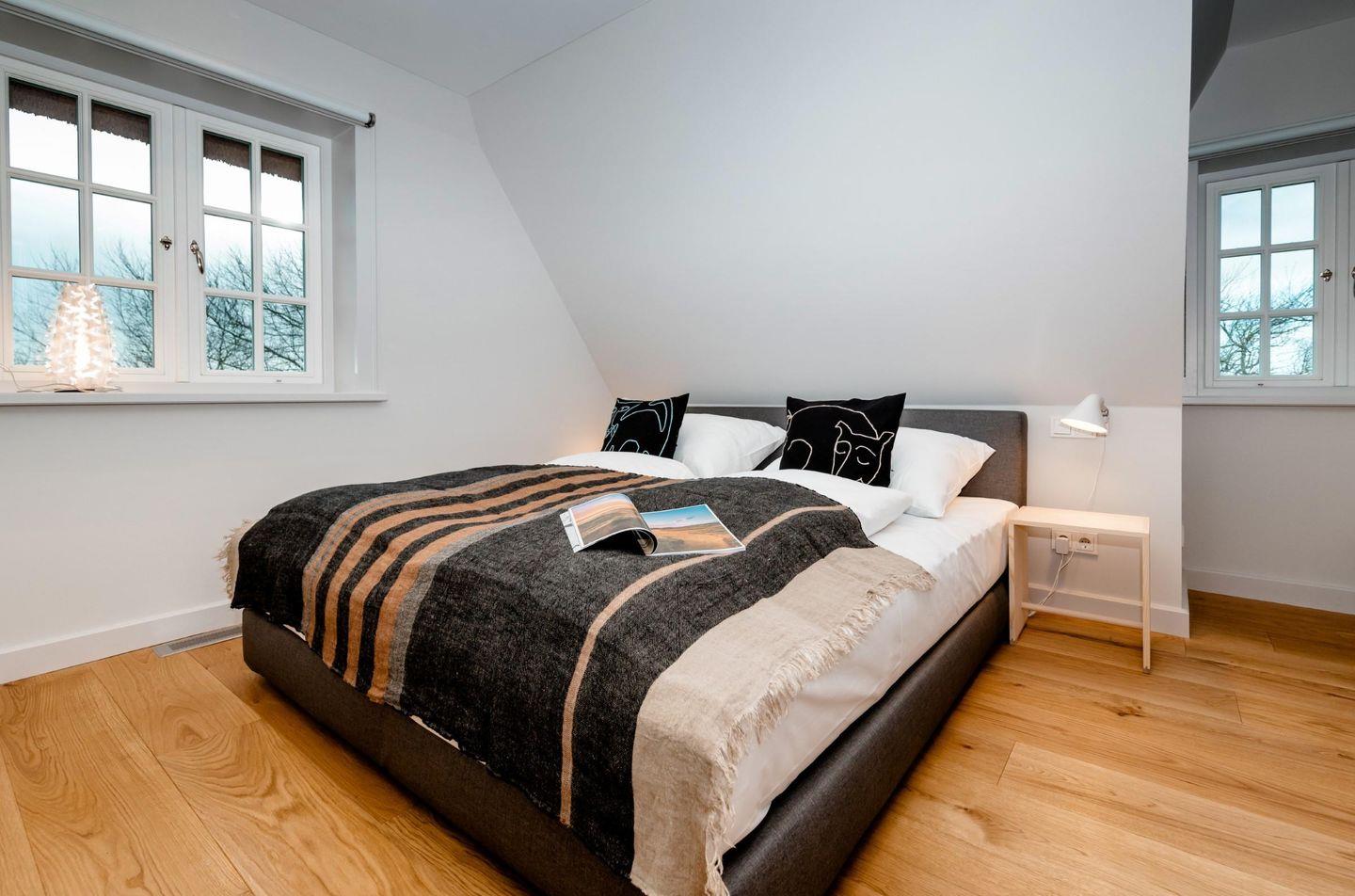 Neubau unter Reet mit freiem Blick aufs Wasser. Großzügig geschnittene Räume, hochwertige Tischlereinbauten und Möbel, ein heller und freundlicher Naturstein aus Frankreich, auf Sylt von Hand nachbearbeitet und antike Fliesen laden zu jeder Jahreszeit zum Entspannen und Träumen ein.