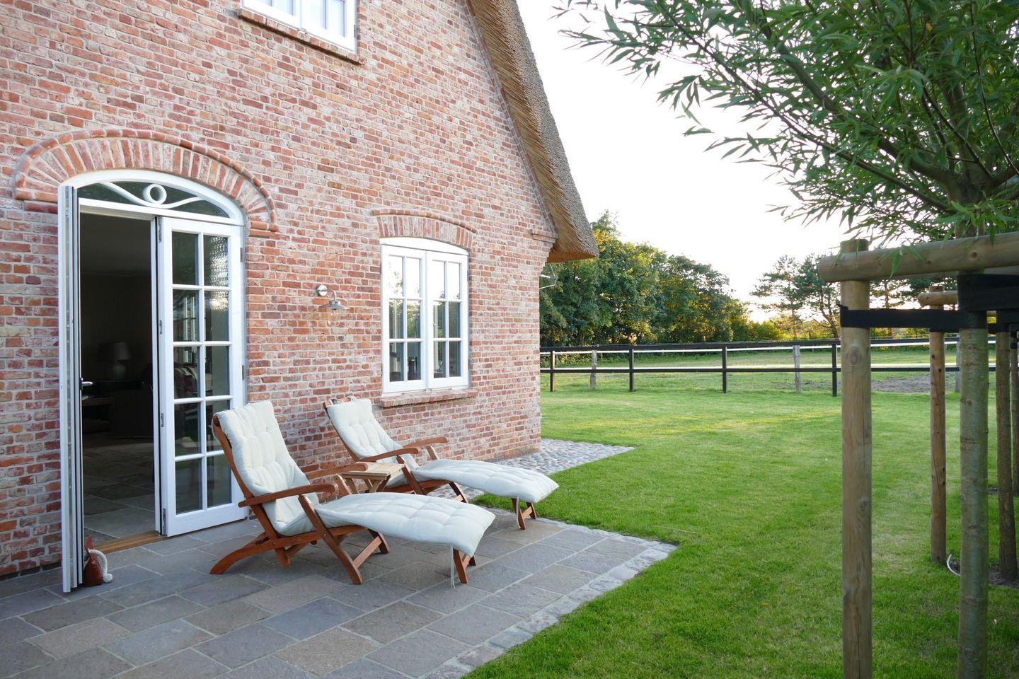 Wunderschöne Doppelhaushälfte unter Reet! Die hellen, einladenden Räume sind hochwertig und harmonisch ausgestattet. Exklusive Tischlereinbauten und erlesene Materialien sorgen für ein gehobenes Wohngefühl. Von der großen Terrasse aus genießen Sie einen schönen Weitblick über die benachbarten Pferde-Wiesen. Das Haus liegt nahe dem Morsumer Golfplatz und ist ein guter Ausgangspunkt für Spaziergänge zum Morsum Kliff.
