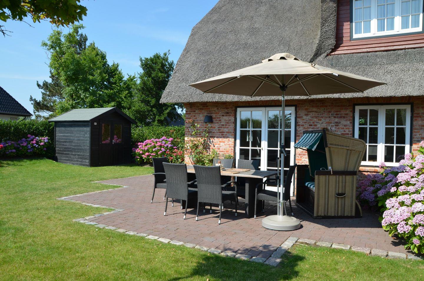 Traumhafte Reetdachdoppelhaushälfte in super Lage mit kleinem Wattenmeerblick aus dem Obergeschoss. Bis zu 5 Personen und ein Hund auf Anfrage sind herzlich willkommen. In dieser wunderschönen Haushälfte heißt das Programm: eintreten und sich wohl fühlen. Der Kamin und eine hauseigene Sauna sorgen für entspannte Momente. Das Hausteil befindet sich sehr schön gelegen unweit vom Morsumer 18-Loch Golfplatz.