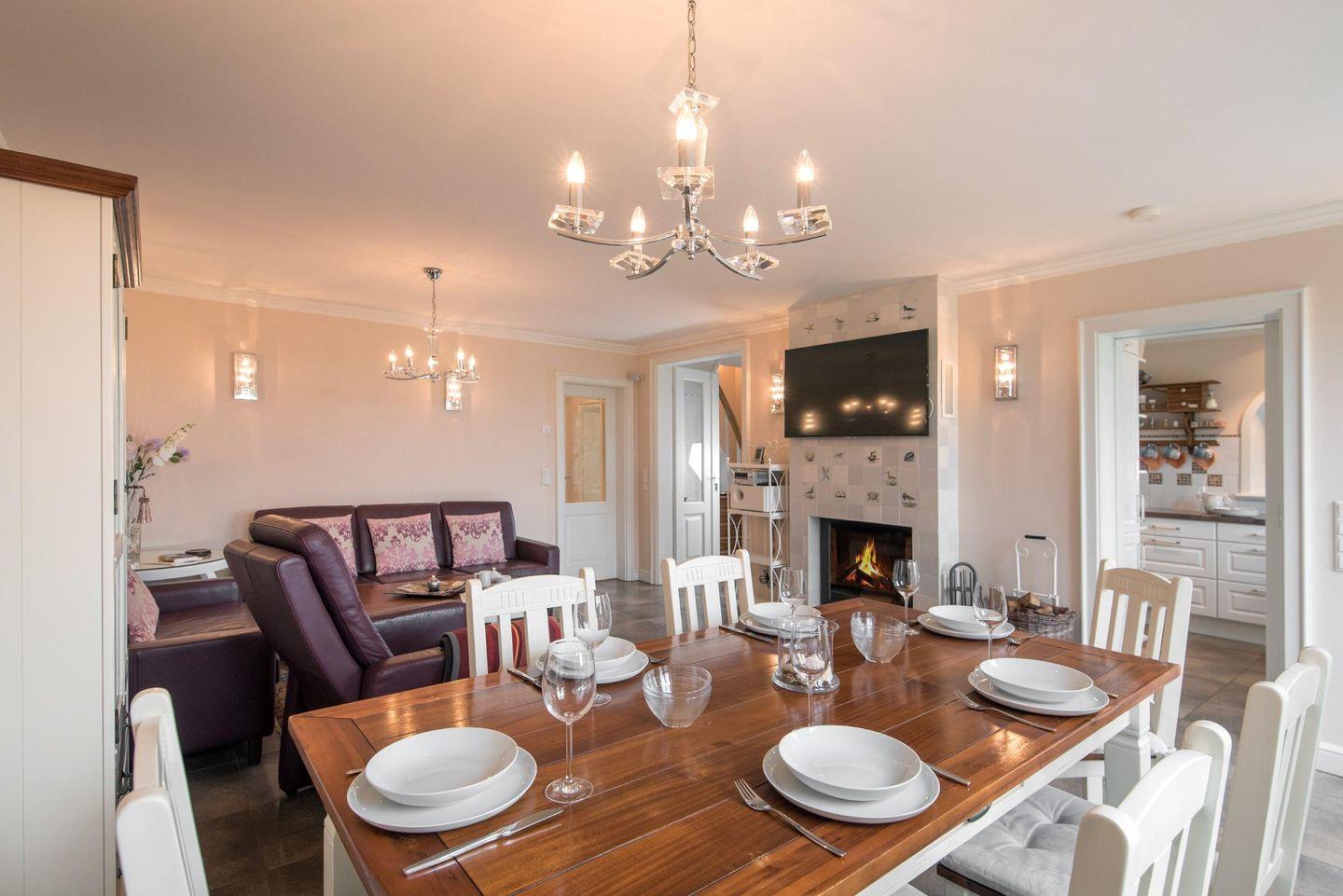 Doppelhaushälfte unter Reet in wunderschöner Lage! Dieses Anwesen bietet Ihnen Platz, Stil und Idylle in ruhiger Randlage unweit des Morsumer 18-Loch Golfplatzes. Dazu kommt ein Blick, der einem das Herz aufgehen lässt - über die Felder zum Deich und zum Wattenmeer. Aufgeteilt in EG und OG bietet Ihnen das Haus jede Menge Platz! Ein Doppelschlafzimmer und ein Dusch- / Wannenbad befinden sich im Erdgeschoss. Vor und hinter dem Haus laden zwei Terrassen mit Gartenmöbeln und Strandkörben zum Entspannen ein. Zusätzlich befindet sich hinter dem Haus ein großer eigener Parkplatz mit Garage. Sylt Urlaub, wie er sein soll! Maximal ein Hund auf Anfrage ist gestattet.