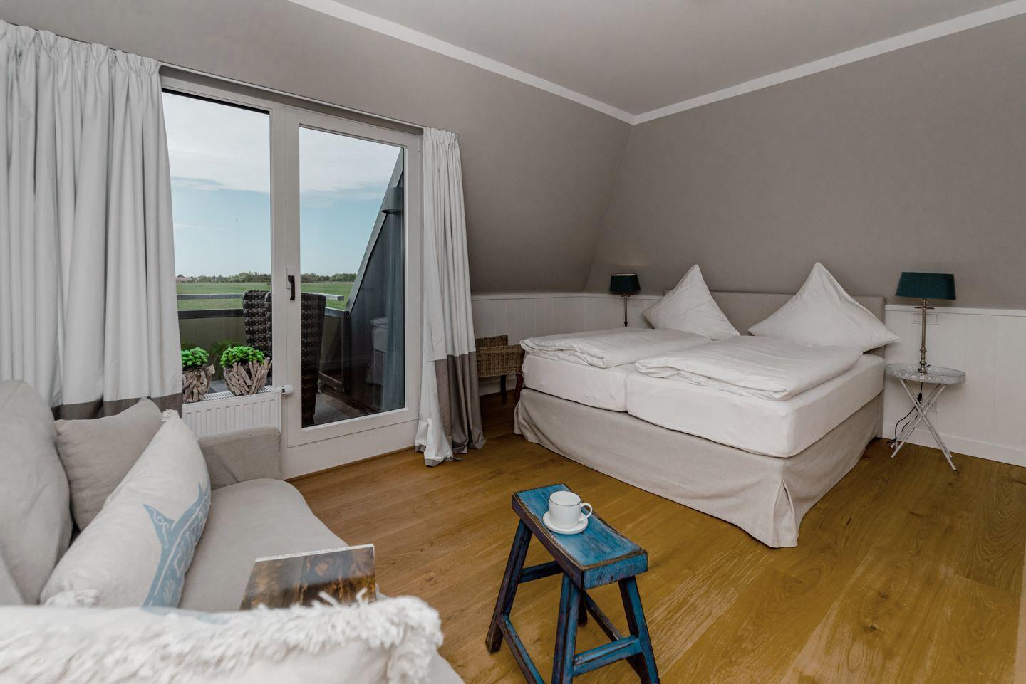 Exklusiv eingerichtetes Endhausteil mit traumhaften Weitblick! Ausgestattet mit hochwertigen Materialien, zahlreichen Tischlereinbauten und einem modernen Farbkonzept bietet es Platz für max. drei Erwachsene und zwei Kinder. Verbringen Sie erholsame Stunden vor dem Kamin oder auf der Südterrasse und blicken Sie dabei über weite Wiesen und den Deich bis auf das Weltnaturerbe Wattenmeer - auch vom Balkon im Hauptschlafzimmer! Maximal ein Hund auf Anfrage ist gestattet.