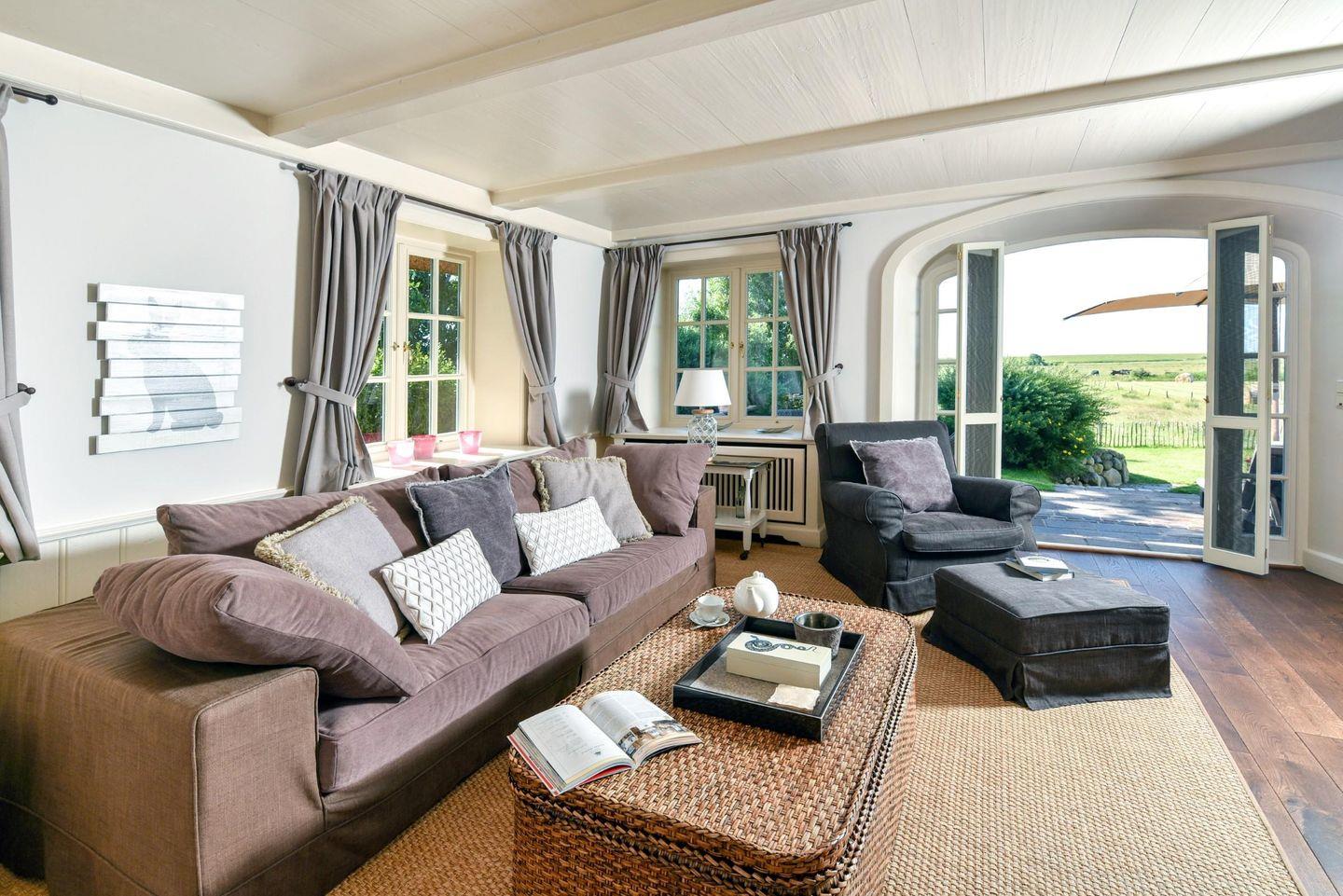 Wunderschönes Reetdachhaus mit Panoramablick. Direkt am Naturschutzgebiet liegt dieses Einzelhaus mit unverbautem Weitblick über Wiesen und Felder. Genießen Sie die Ruhe und die Natur der Morsumer Deichlandschaft! Verbringen Sie gemütliche Stunden vor dem Kamin oder entspannen Sie in der separierten Sauna mit zusätzlicher Duschgelegenheit. Das Haus ist gut geeignet für 2 Erwachsene und 2 Kinder. Maximal ein Hund auf Anfrage ist gestattet.