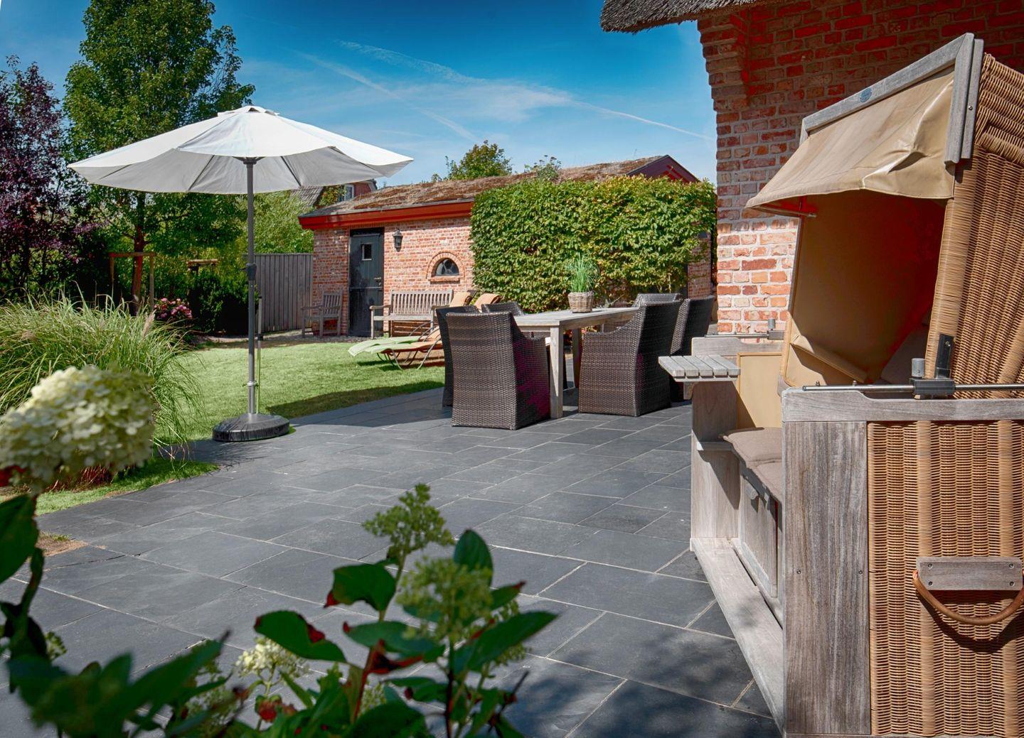 Diese Reetdach-Doppelhaushälfte nahe dem Wattenmeer bietet exklusiven Wohnkomfort. Großzügigkeit in Verbindung mit luxuriöser Ausstattung und ganz viel Liebe zum Detail lassen hier ein ganz besonderes Ambiente entstehen. Hier können Sie Ihren Urlaubstraum verwirklichen. Der wundervoll angelegte Garten mit seinen beiden großen Sonnenterrassen und Strandkorb, bietet die perfekte Kulisse zum Entspannen!