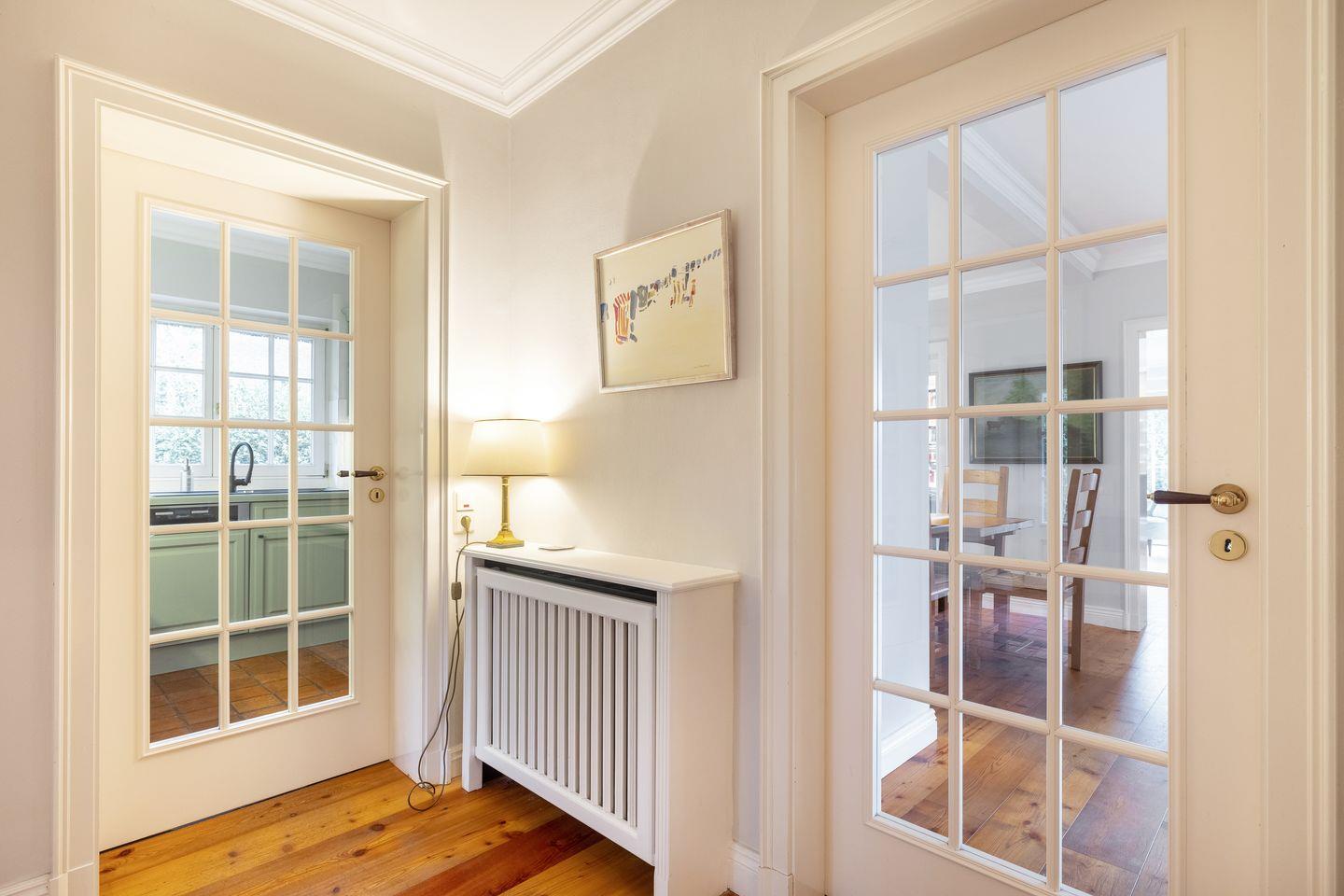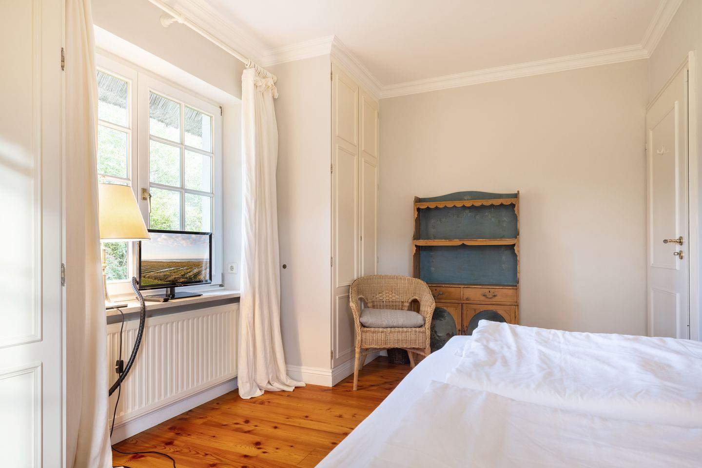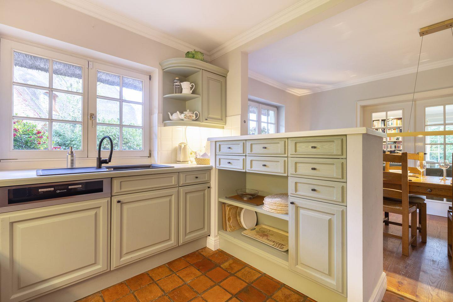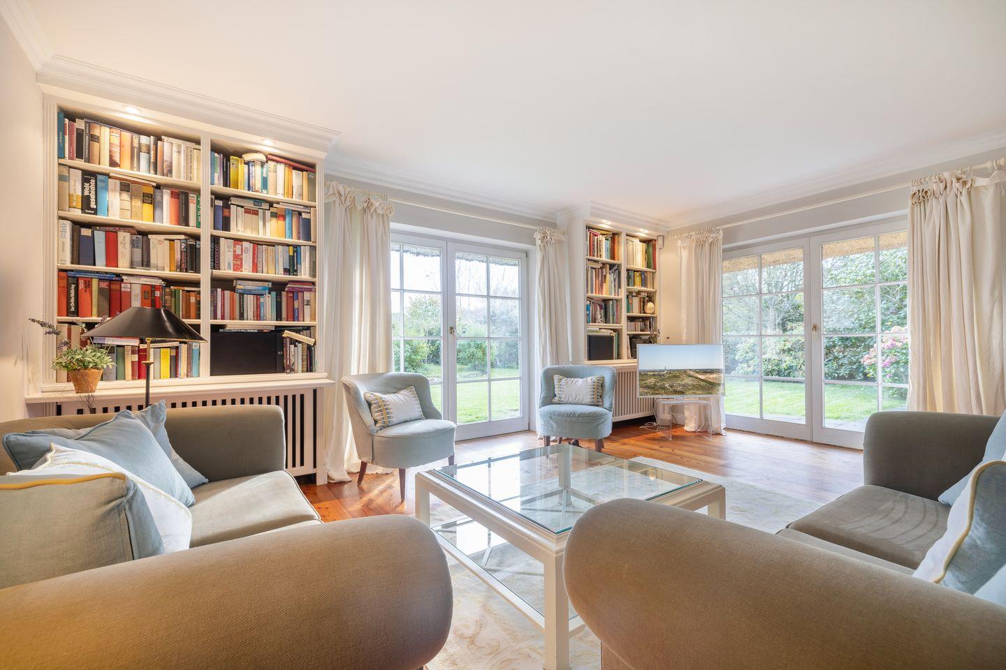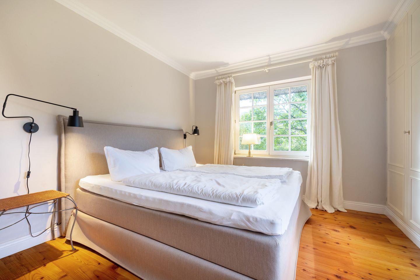 Sie haben durch den raffinierten Grundriss genügend Rückzugsmöglichkeiten, so dass Sie auch in Ruhe ein Buch aus Ihrer eigenen Bibliothek lesen und dabei den Blick aus allen Zimmern in den von bepflanzten Friesenwällen umgebenen Garten des freistehenden Hauses genießen können. Der von der ruhigen Straße aus uneinsehbare Garten mit großem Rasen, mächtigen Hortensien, gepflegten Kletterrosen und altem Baumbestand steht Ihnen allein zur exklusiven Nutzung zur Verfügung. Vier Sonnenliegen sind neben diversem Teakholzmobiliar auf den beiden Terrassen vorhanden.
