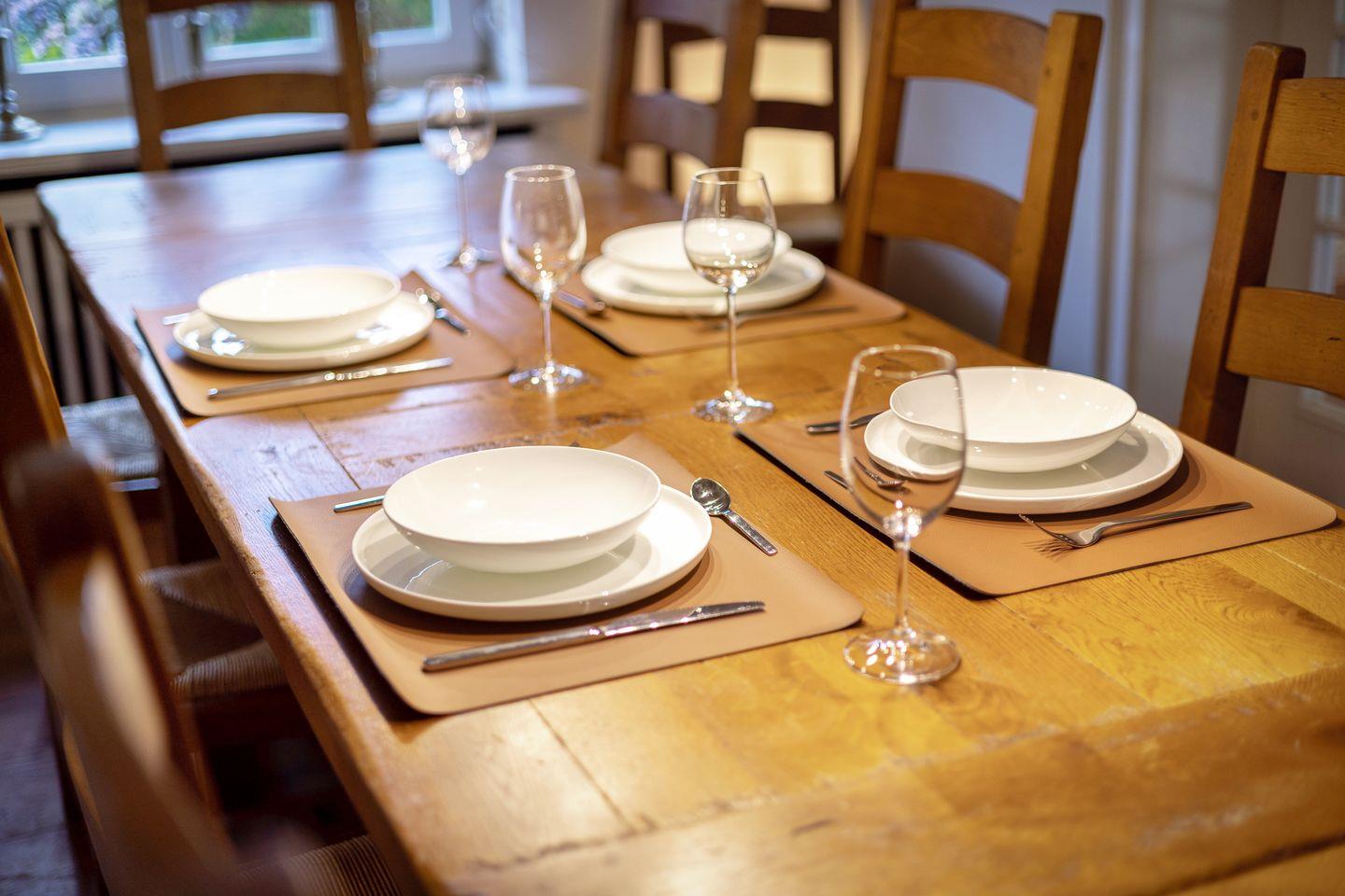 Die Besonderheit an diesem Domizil ist sicherlich der 1350 m2 große gärtnerisch gepflegte Garten mit Südausrichtung, der in 2023 modern gestaltete Wellnessbereich mit Sauna und Walk In Dusche sowie modernem Ruheraum im „Warftgeschoss“ sowie die offene und großzügige Raumaufteilung aller Wohn- und Schlafräume die sämtlich im Erdgeschoss liegen. Das Farrow & Ball Farbkonzept und der nordische gemütliche Stil runden das Gesamtbild ab. Alle Räume sind Tageslichtdurchflutet. Die in 2023 neu gestaltete schöne offene Küche im Landhausstil lädt zum Kochen auch für Gäste, die an dem 12 Personen fassenden großen Esstisch im angrenzenden Essbereich gut Platz finden ein. Kochutensilien und Geschirr / (Wein-) Gläser sind für über 12 Personen vorhanden. Die Elektrogeräte sowie Spüle wurden in 2023 erneuert. Neben einer großzügigen Leseecke mit Gartenblick steht Ihnen im mit hochwertiger Einbaubibliothek, zwei Sofas und zwei Sesseln, Sekretär und zwei Terassentüren ausgestatteten Wohnzimmer ein großer Internetfähiger Flatscreen-TV.