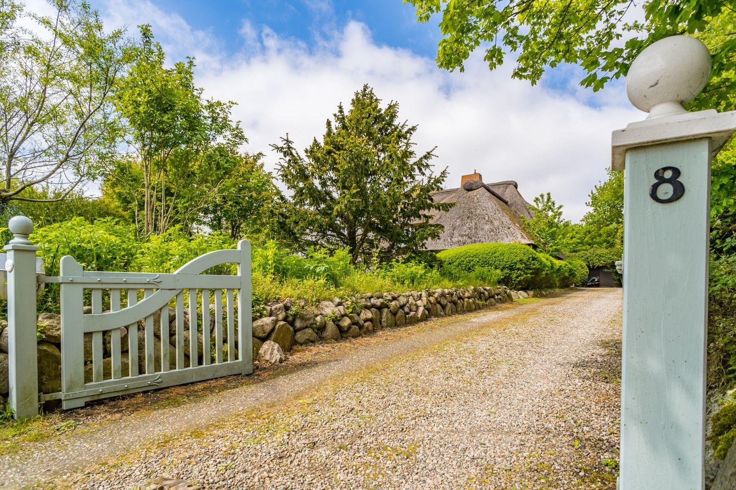 Ihr Fahrzeug sowie Fahrräder oder Sportgeräte können Sie im großzügigen Doppelcarport abstellen, die lange Kieseinfahrt dorthin nutzen nur Sie. Ein sylttypisches Friesentor ermöglicht es, das Grundstück abzuschließen, was ggf. auch für Hunde wichtig sein kann.