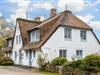Von einer ruhigen Stichstraße mit schönen, teilweise noch alten Friesenhäusern und einem kleinen Wäldchen führt eine Auffahrt zum weißen, reetgedeckten Haus auf einem großzügigen Grundstück.