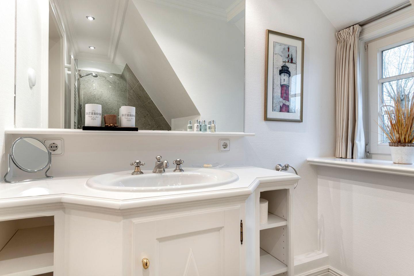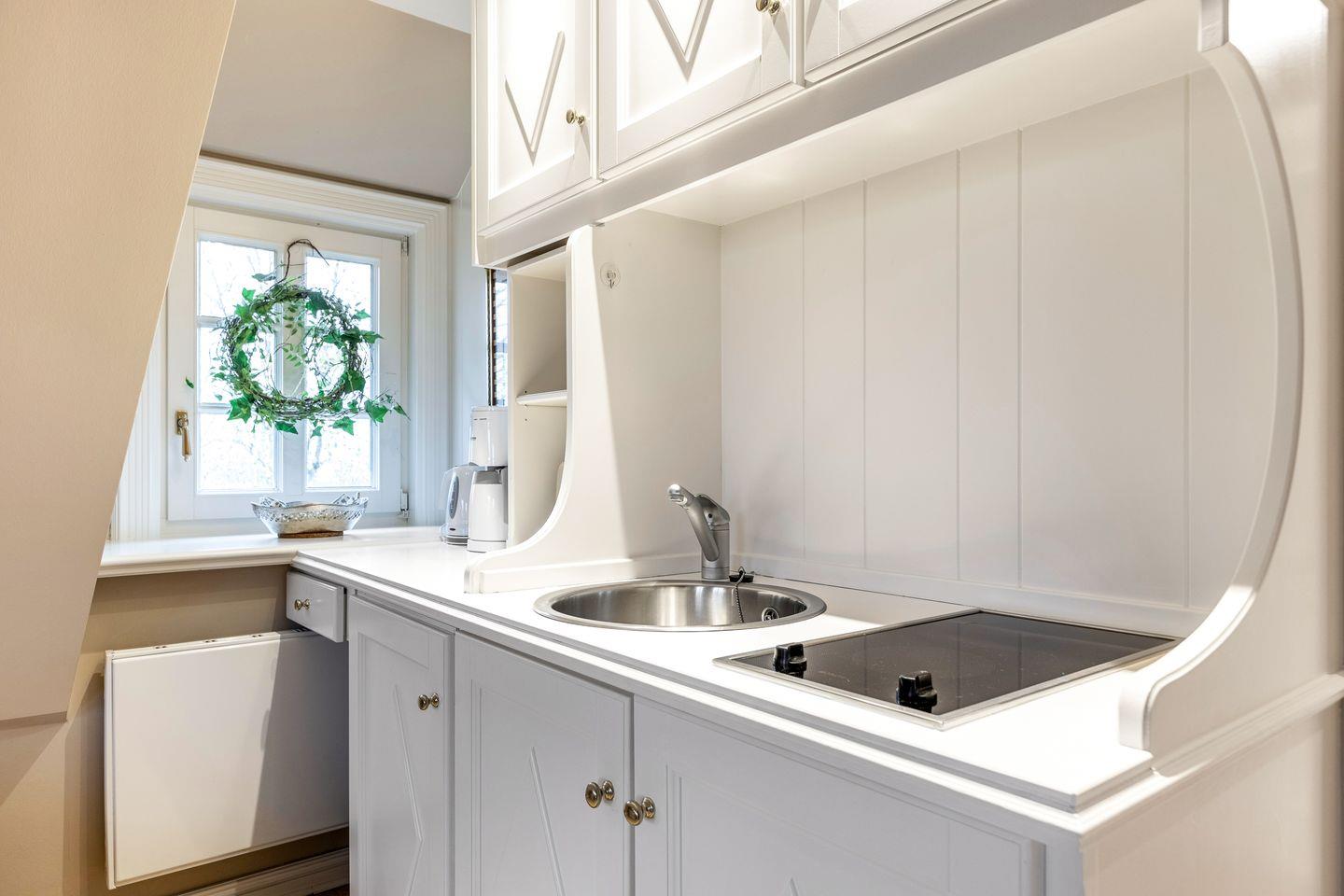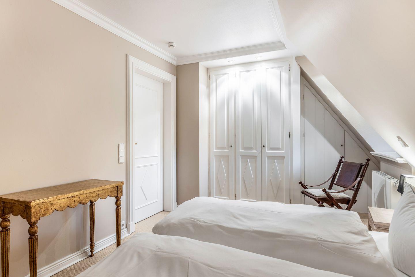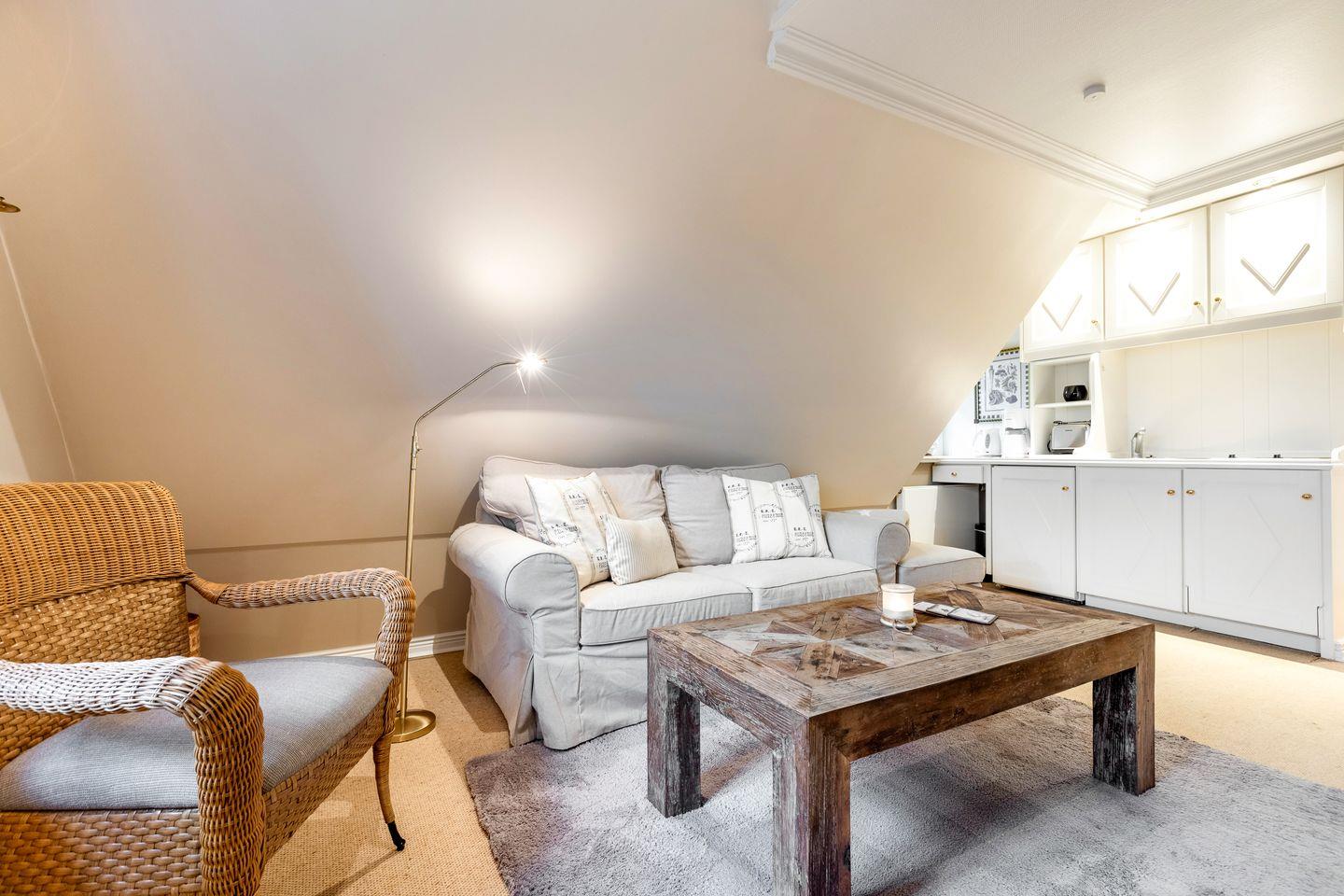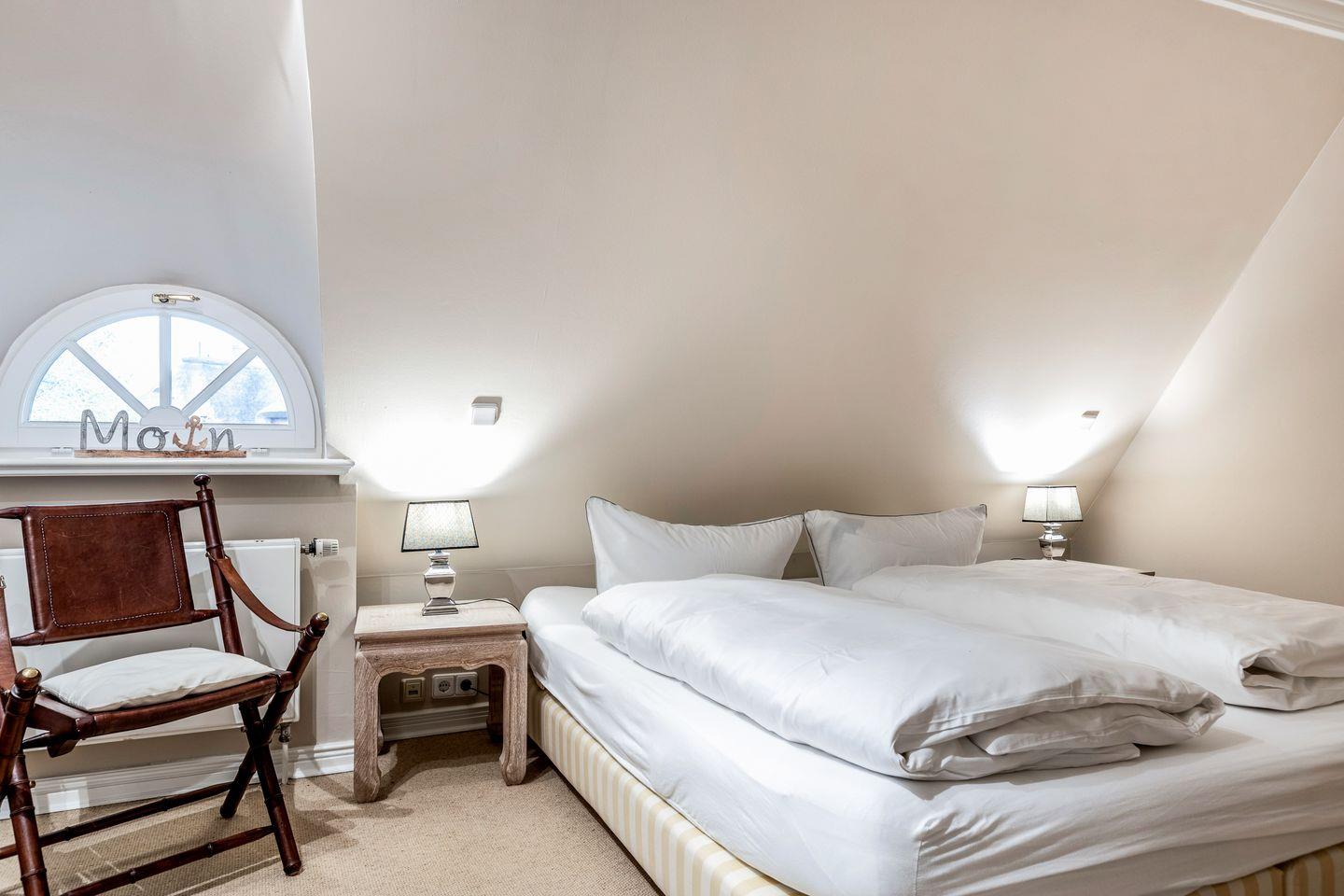 Exklusive Ferien-Wohnung unter Reet auf dem Gelände der Hotelanlage "Christian VIII", die durch ihre äußerst geschmackvolle Einrichtung und den Komfort besticht. Die hier vorgestellte reetgedeckte Obergeschoßwohnung liegt sehr schön auf der Anlage des Hotels "Christian VIII" mit parkartigem Gelände und hohen Bäumen. Sie ist ca. 50 m² groß und bietet zwei Personen Platz. Die sorgfältig abgestimmte, exklusive Einrichtung ist von höchster Qualität und entspricht dem heutigen "Lifestyle". Stilvolle Möbel, hochwertige Tischlerarbeiten, wunderschöne Lampen und Accessoires runden das Gesamtbild ab. Die Wohnung bietet Komfort wie Kabel-TV, Telefon, W-LAN, Stereoanlage mit CD und iPod-Station, Geschirrspüler, 2-Platten-Cerankochfeld.
