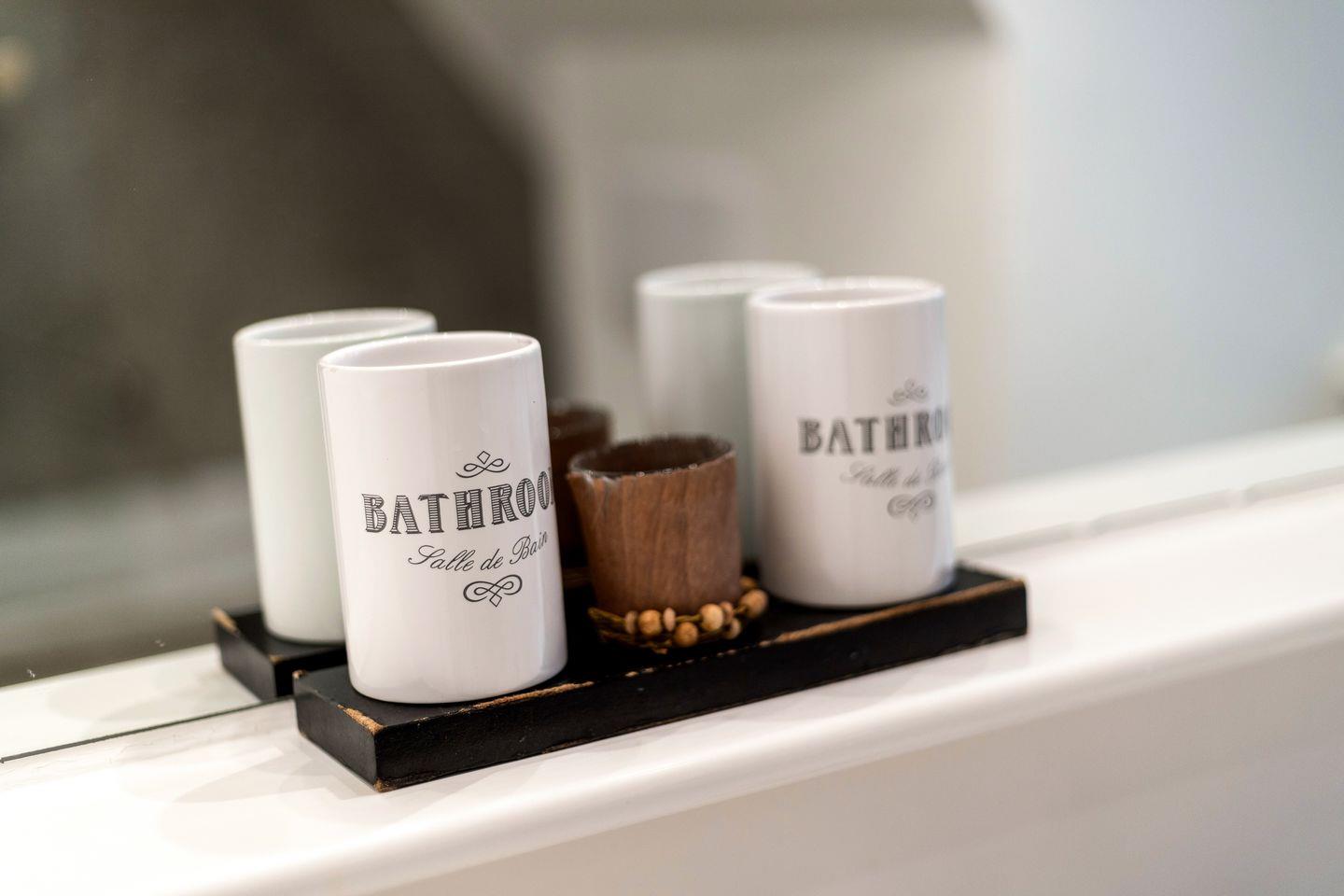 helles Vollbad aus Marmor mit elektrischem Handtuchhalter, Fön und Fußbodenheizung sowie hochwertigen Tischlerarbeiten