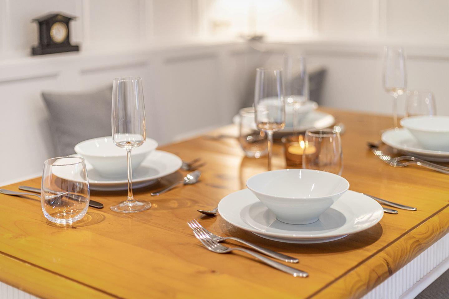 einladender, heller Essplatz mit angrenzender, perfekter Landhausküche, GS