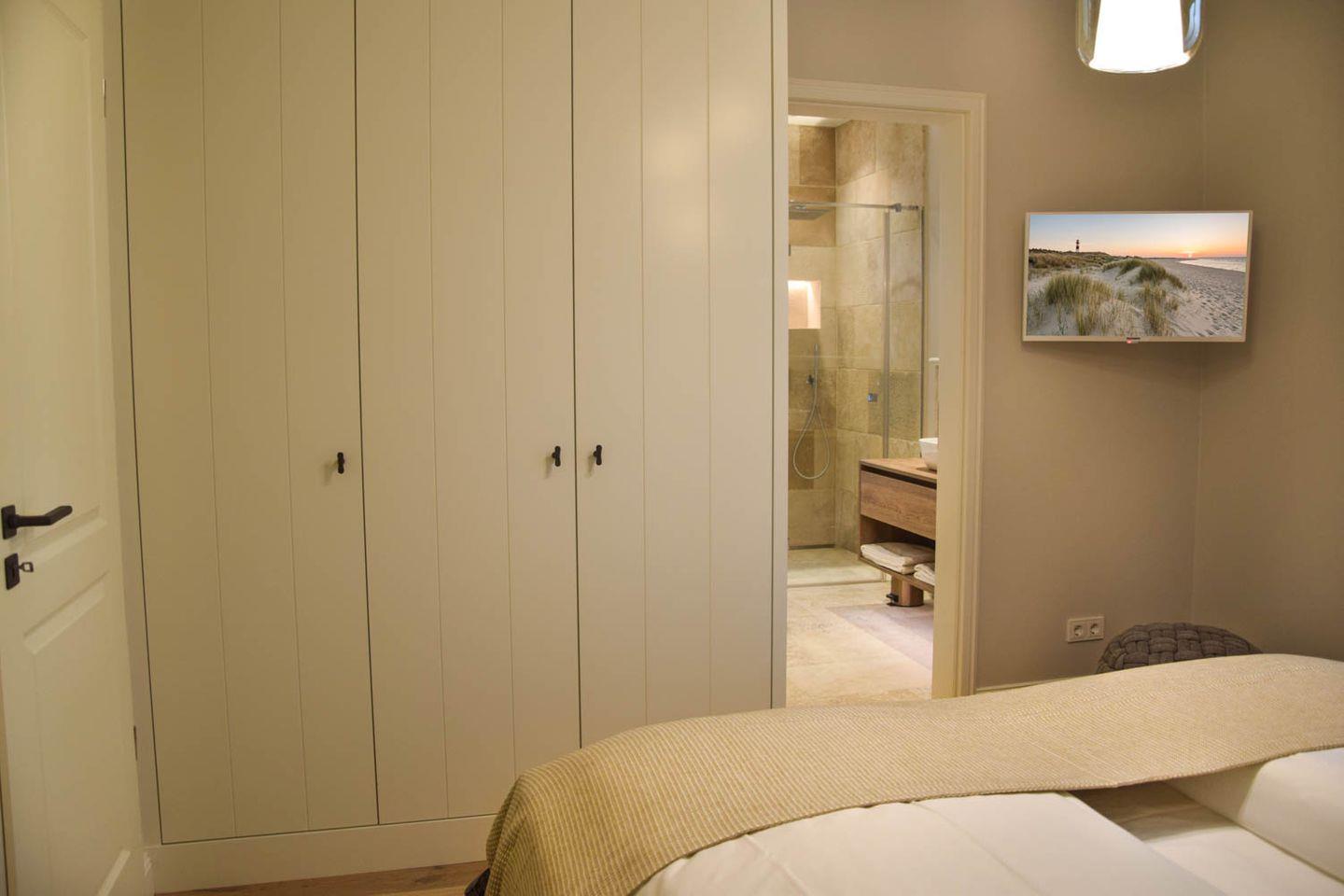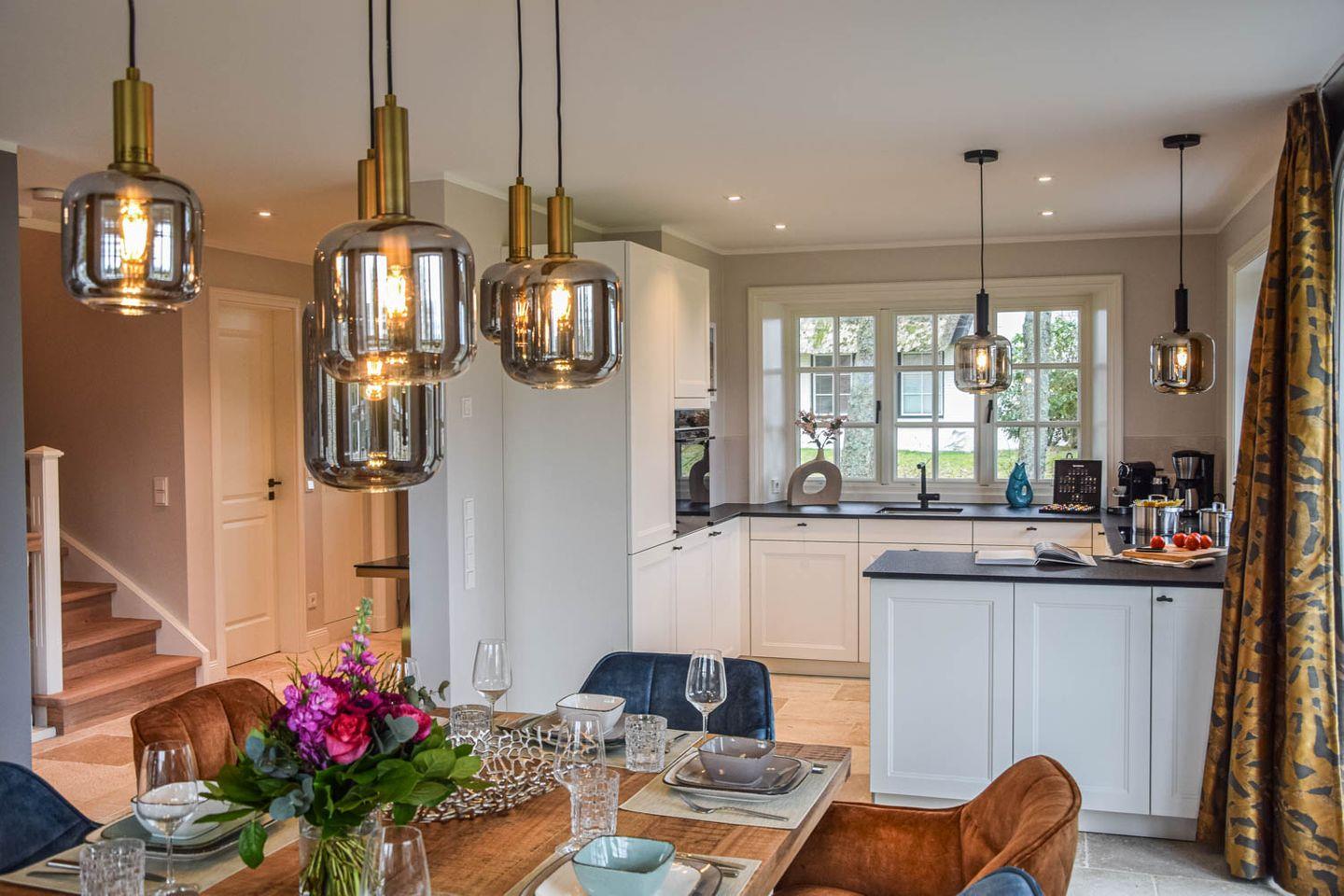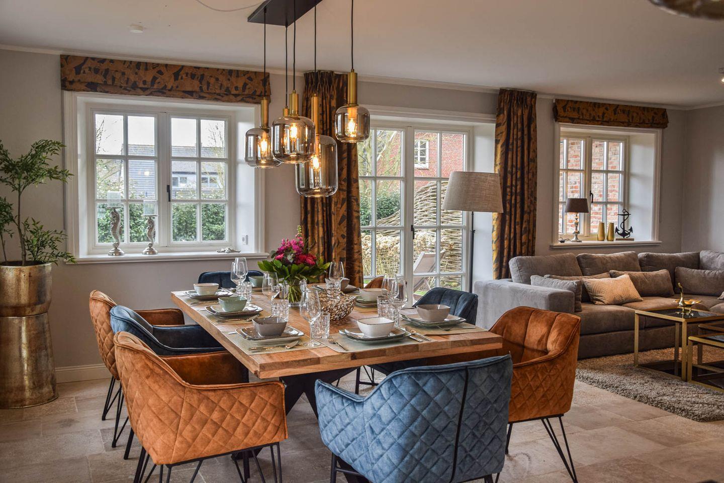 Zischen sanft geschwungenen Friesenwällen, blühenden Hortensien in Rosé und Blau, Ölweiden, Heckenrosen und der klaren Luft der Wiesenlandschaft empfängt Sie ein Zuhause, das mit einer stillen Schönheit berührt. Der Friesengiebel, das handgefertigte Reet, die feinen Details im Inneren – alles hier erzählen von Sorgfalt, Qualität und dem Wunsch, Raum für das Wesentliche zu schaffen. Vier Schlafzimmer – jedes mit einem eigenen Charakter. Mal sanft zurückhaltend, mal lichtdurchflutet und weit. Dazu drei moderne Bäder, eins davon en suite, stilvoll in Stein und Holz gehalten. Die offene Wohnküche ist hochwertig ausgestattet – bis hin zum Austernmesser und der Grätenzange – und lädt zu geselligen Abenden ein.