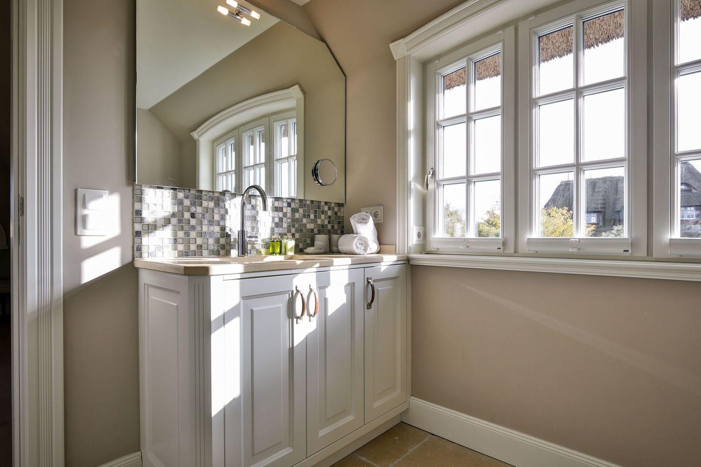Das Haus ist hochwertig und exklusiv ausgestattet und von einem großzügigen Garten mit bepflanzten Friesenwällen umgeben. Selbstverständlich ist dieses Haus mit 5 Sternen des DTV klassifiziert. Das in 2014 fertiggestellte Haus wurde mit antiken Rotziegeln gemauert und ist von bepflanzten Friesenwällen und großzügiger Rasenfläche umrahmt. Das helle und großzügige Haus über drei Ebenen (EG, OG, Souterrain) ist ca. 234 m² groß und bietet zwei bis acht Personen ausreichend Platz. Dieses Haus lebt von seiner offenen und großzügigen Raumaufteilung. So wird nahezu das komplette Erdgeschoss genutzt für einen kombinierten Wohn- und Essraum mit Kamin und offener Küche. Die Schlafzimmer im Obergeschoss bekommen ihren besonderen Charakter durch die nach oben offenen Giebel. Im Souterrain lädt eine Sauna inkl. Ruheraum zum Entspannen ein. Die Räumlichkeiten im Erdgeschoß sind mit großflächigen sehr hochwertigen Natur Limestone ausgelegt, im Obergeschoß liegen Echtholzeichendielen, der gesamte Souterrain und die Bäder sind ebenfalls mit Limestone verlegt. Das gesamte Haus ist mit modernen und hochwertigen Interieur eingerichtet. Im Erdgeschoss und im Souterrain in den Bädern ist jeweils eine Fußbodenerwärmung integriert, zusätzlich sind auch Heizkonvektoren in allen Räumen angebracht. Auf allen Ebenen finden Sie hochwertige Tischlereinbauten. Darüber hinaus bietet das Haus jeglichen Komfort wie Sauna, Kamin, Flat-TV, W-LAN, alle Schlafzimmer und Wohnzimmer mit Flachbildschirmen, Alarmanlage, Geschirrspüler, Soda-Stream, Mikrowelle, Backofen, Kühlschrank, Induktionsherd, Hauswirtschaftsraum mit Waschmaschine und Trockner, Safe, zwei Pkw-Stellplätze. Kaminholz sowie Bademäntel sind für Sie als Gast inklusive und ebenfalls vor Ort im Domizil.