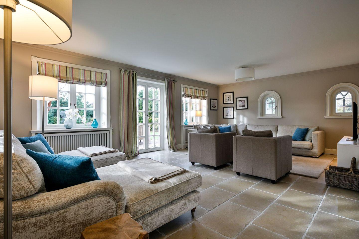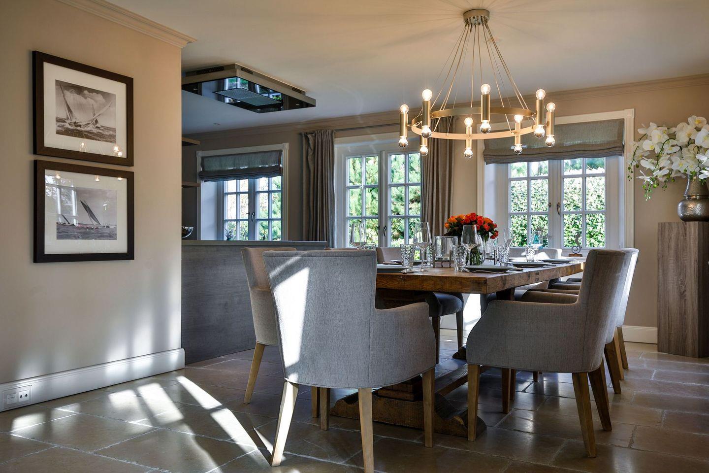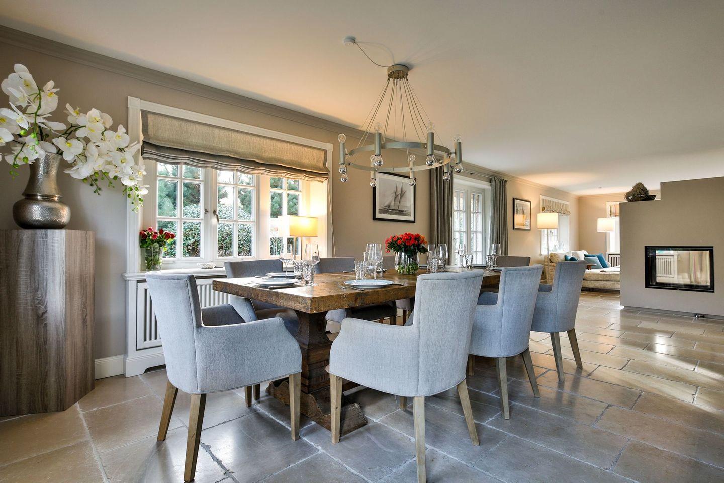 Wohn-/Essbereich: Essbereich mit großem Tisch mit 8 Stühlen für die ganze Familie, geräumiger Wohnbereich mit großer Eckcouch und zwei Sesseln, sowie zwei Recamiere, doppelseitigen dekorativer Kamin