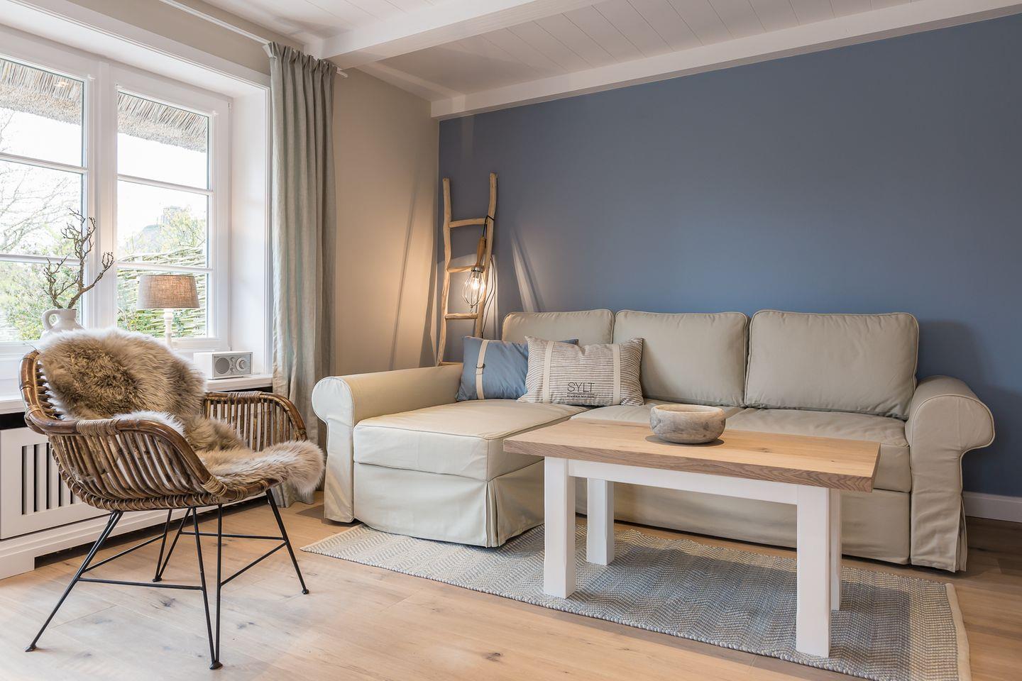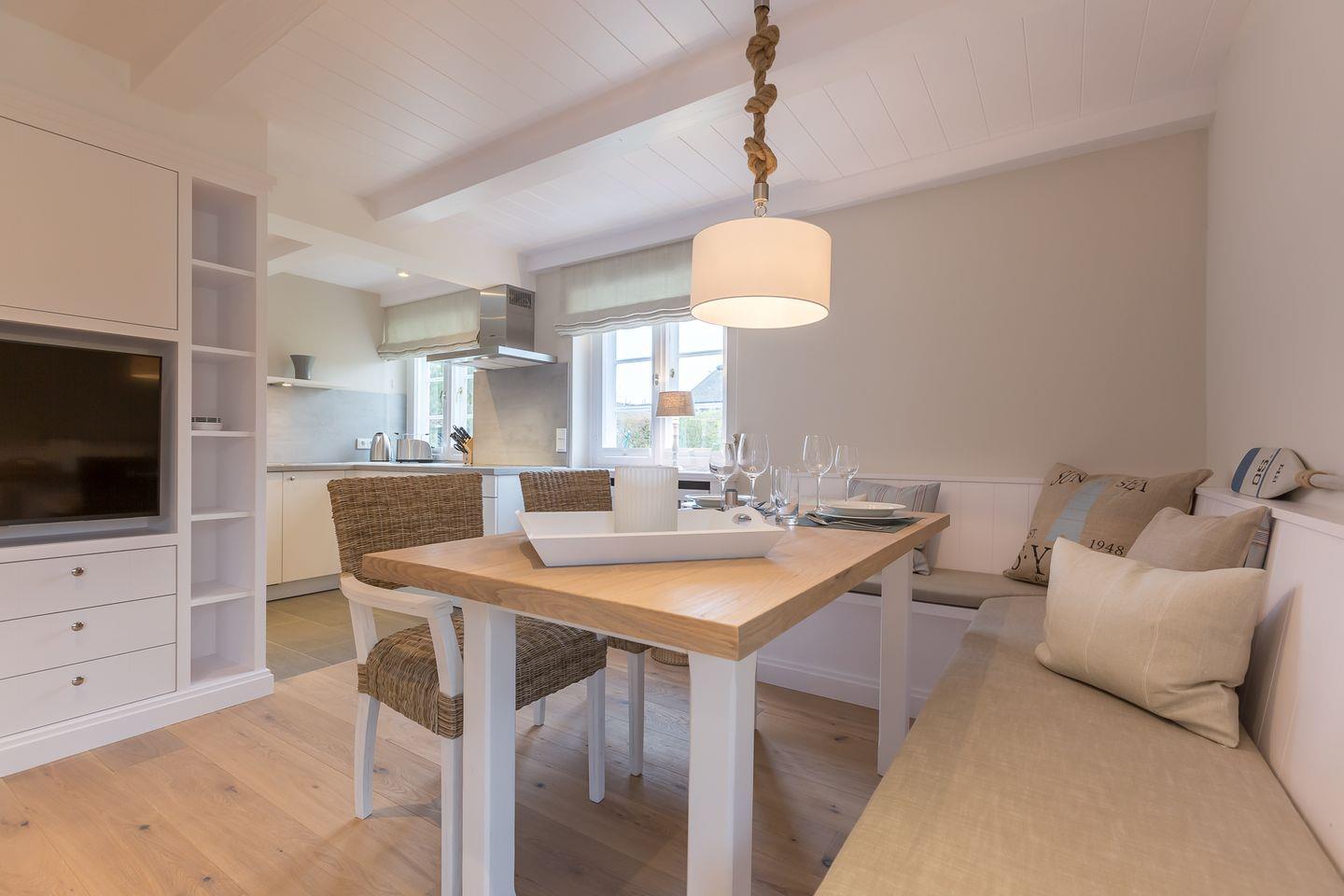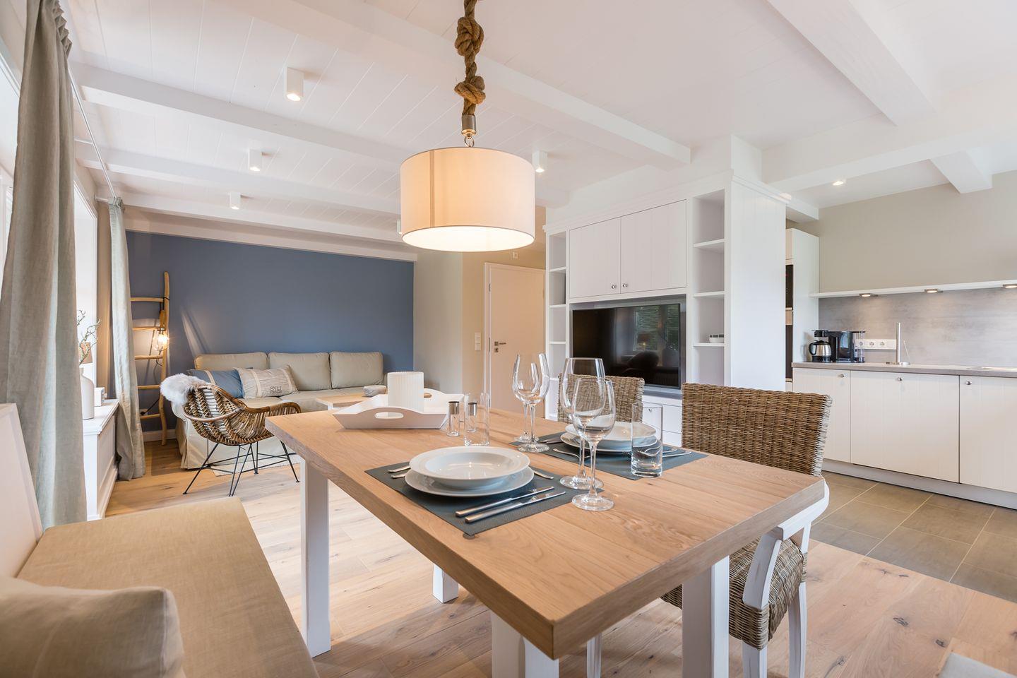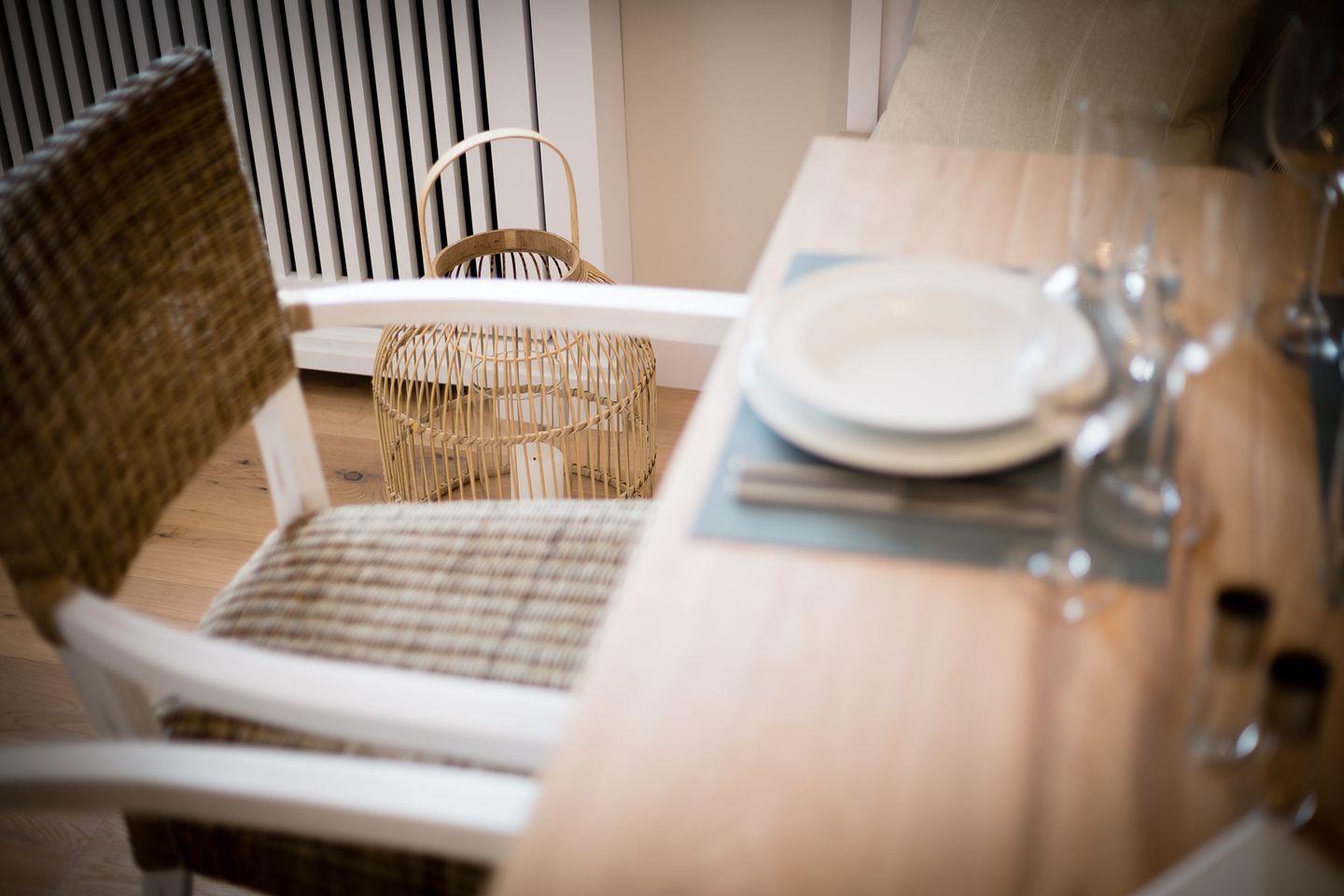 Diese frisch renovierte Erdgeschoss Wohnung ist ca. 55 m² und bietet bis zu zwei Personen eine besondere Wohlfühlatmosphäre zum Erholen. Ausgesuchtes hochwertiges Interior, miteinander harmonisierende Farben und stylische Wohnaccessoires geben der Wohnung das gewisse Etwas. Sie bietet Komfort wie Backofen, Mikrowelle, Geschirrspüler, Cerankochfeld, Senseo Kaffeemaschine und Flat-TV. Für Sonnenstunden steht Ihnen eine Terrasse mit Strandkorb, Sonnenliegen und Gartengestühl zur Verfügung. Der Strandkorb und die Gartenmöbel stehen Ihnen von ca. April - Oktober zur Verfügung.