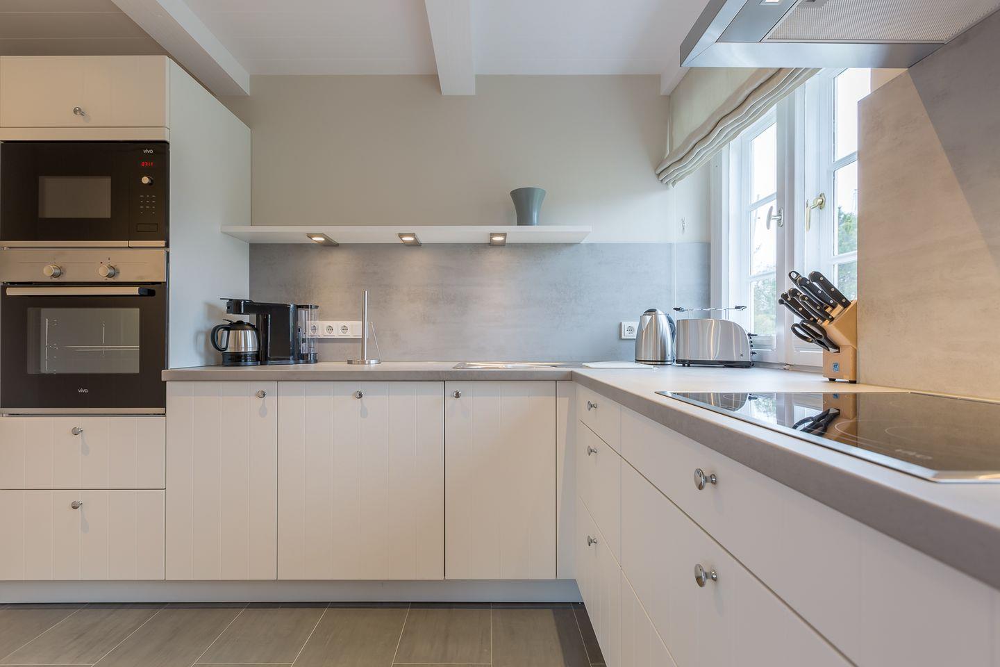 Küche: zum Essbereich offene moderne Küche mit Geschirrspüler, Backofen, Cerankochfeld etc.