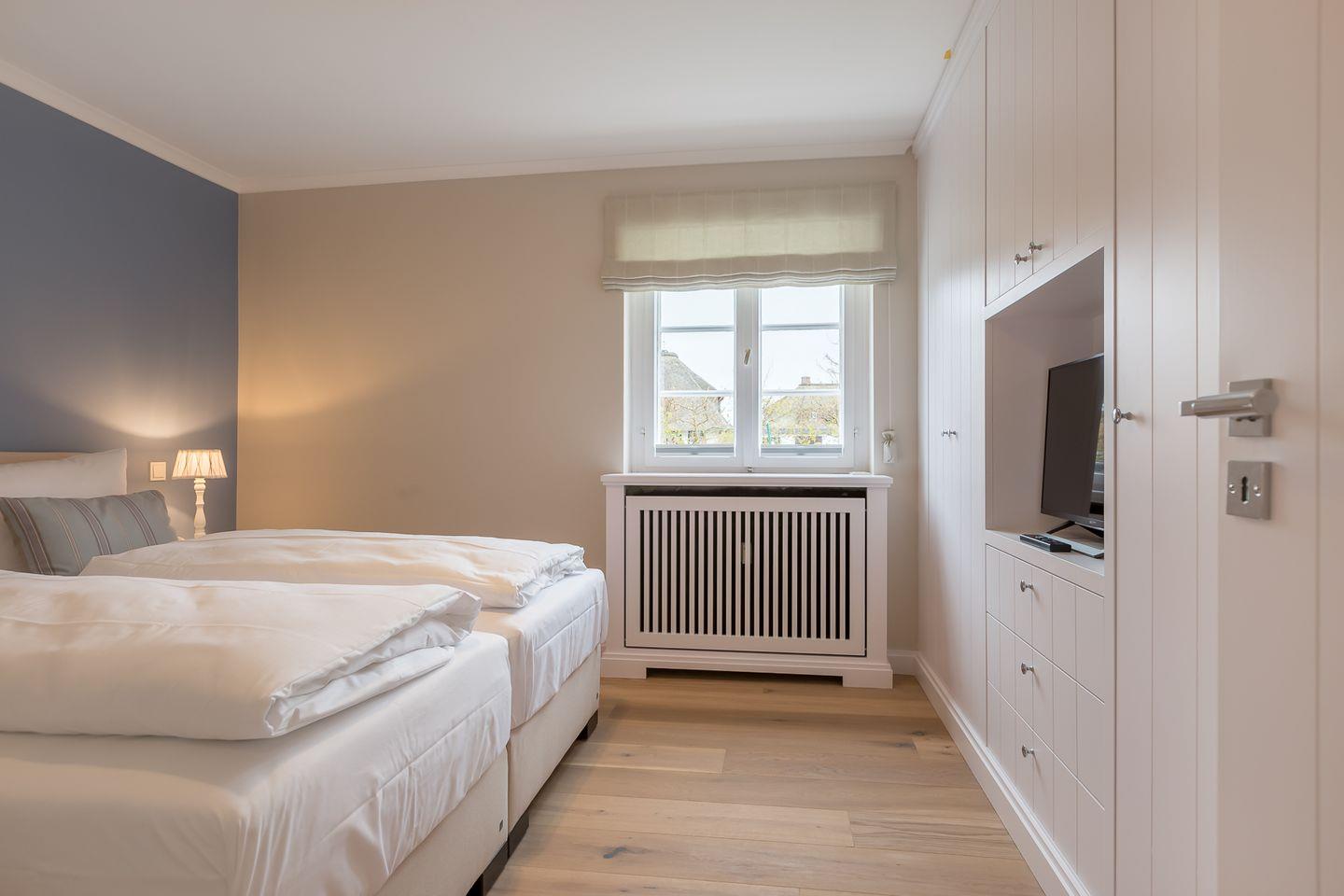 Schlafen: Schlafzimmer mit Boxspringbett, großem Einbauschrank und Flat-TV
