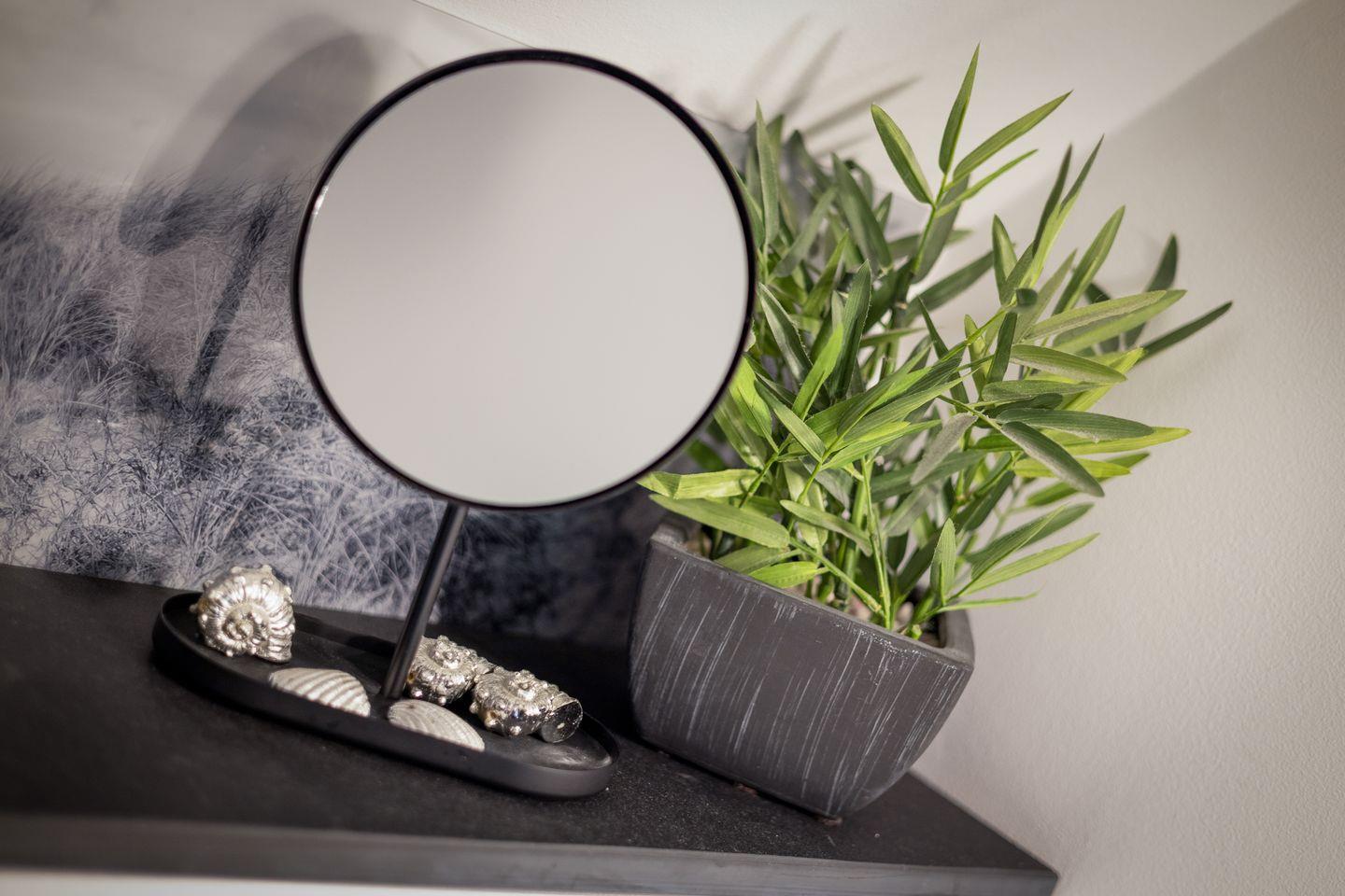 Schlafen : Zimmer mit Boxspringbett, eingebautem Kleiderschrank und großem Ganzkörperspiegel