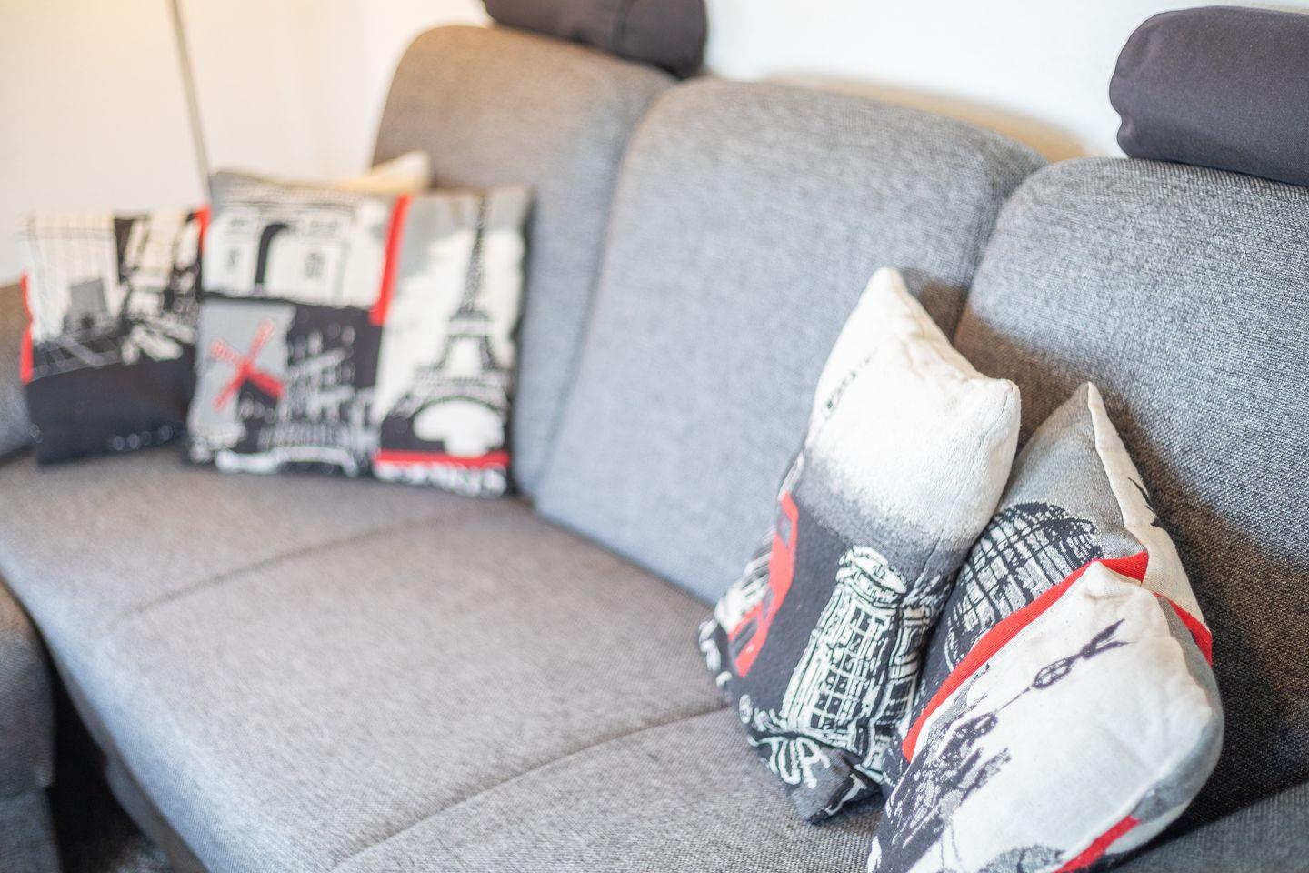 Wohn-/Essbereich: großzügige Eck-Couch als Sitzgruppe, Essecke mit 4 Stühlen