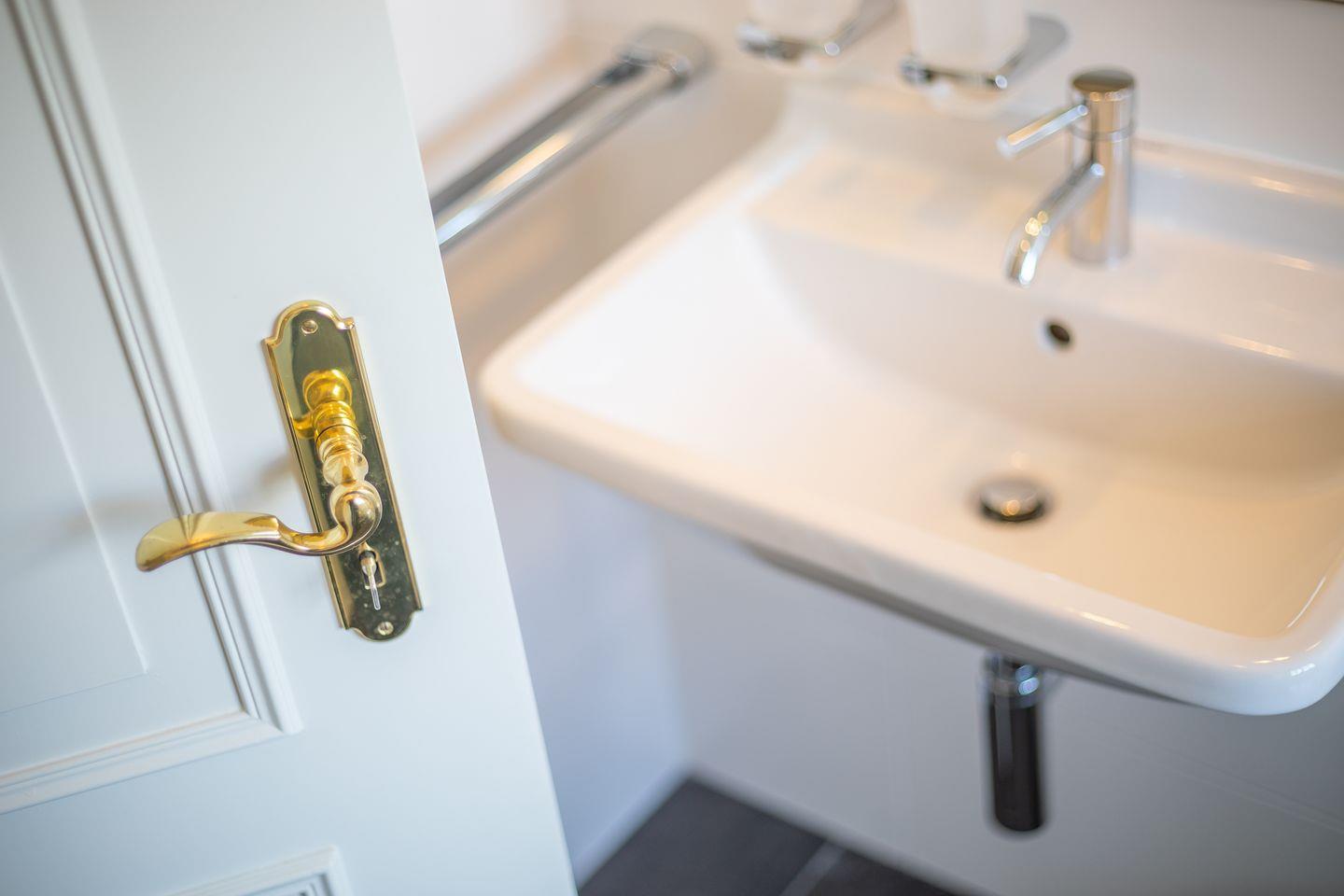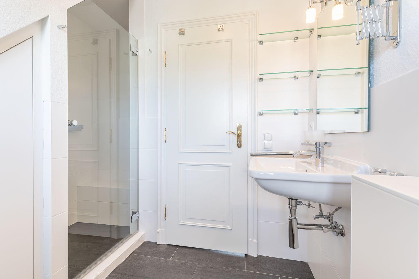 Bad: helles Duschbad/ WC mit großem Spiegel