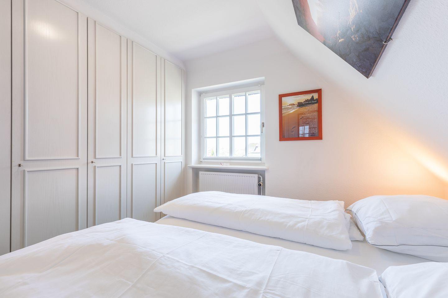 Schlafen 1: Schlafraum mit Doppelbett (180 x 200 cm, ohne Fußteil) und Einbauschrank