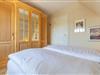 Schlafen 1: Schlafraum mit Doppelbett (160 x 200 cm ohne Fußende) und schönem Holzschrank