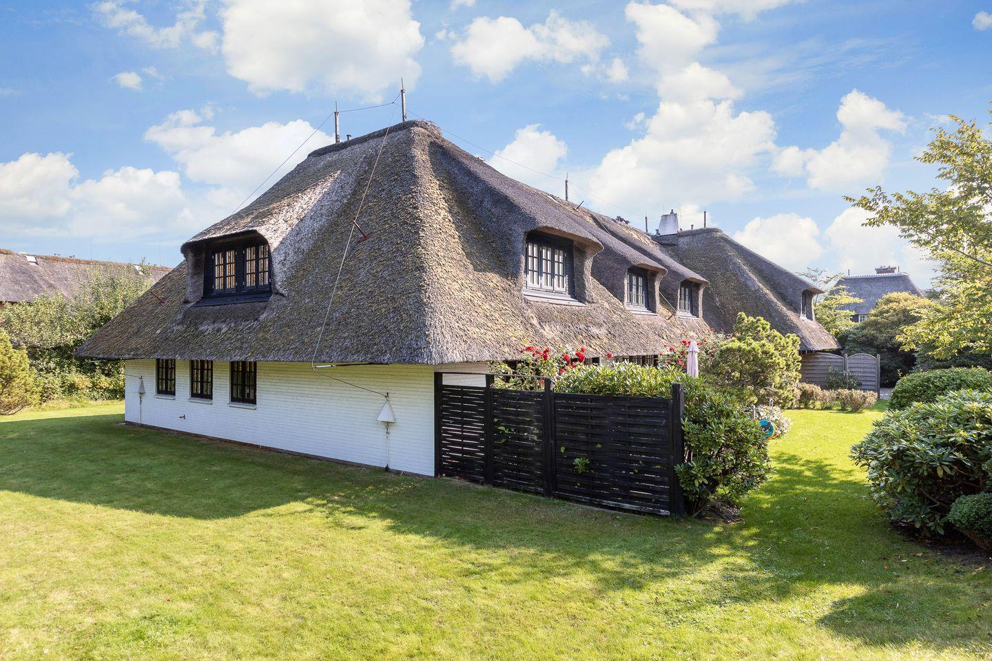 Die reetgedeckte, sehr gepflegte Anlage liegt auf einem ca. 2000 m² großem Grundstück an einer ruhigen Seitenstraße nahe dem Benen-Diken-Hof. Die Wohnung ist hell und gemütlich eingerichtet. Sie bietet Komfort wie Smart-TV, Telefon, Stereoanlage mit CD-Player, Backofen, Mikrowelle, Geschirrspüler. Sonnenkuhle mit Strandkorb (rechts, schräg zur Eingangstür ca. April - Oktober) und Friesenbank und Pkw-Stellplatz.