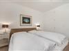 Schlafen: geräumiger Schlafraum mit elektrisch verstellbarem Doppelbett (2 Matratzen á 90 x 200 cm) ohne Fußende und Einbauschrank