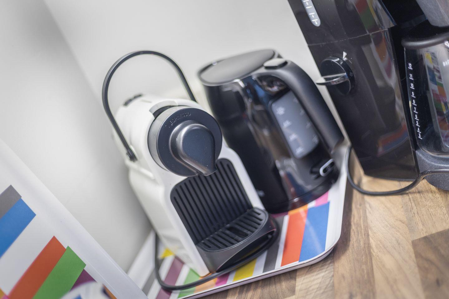 Küche: offene Küche im Wohnbereich mit Geschirrspüler, Cerankochfeld, Backofen, großem Kühlschrank, Nespresso Kaffeemaschine etc.