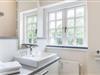 Bad: modernes Duschbad mit Einzelwaschtisch und großem Spiegel