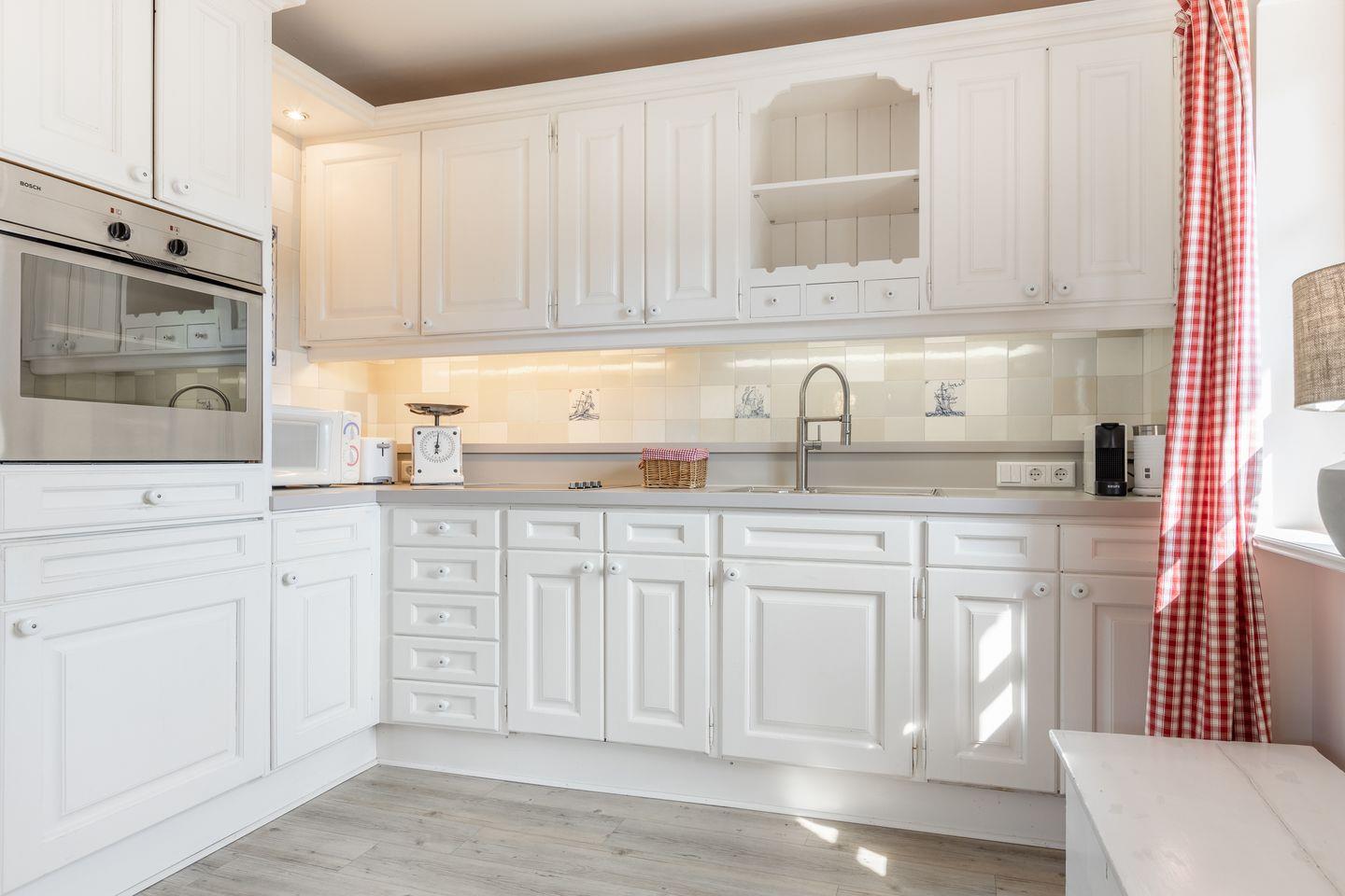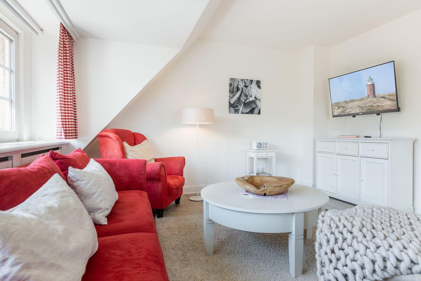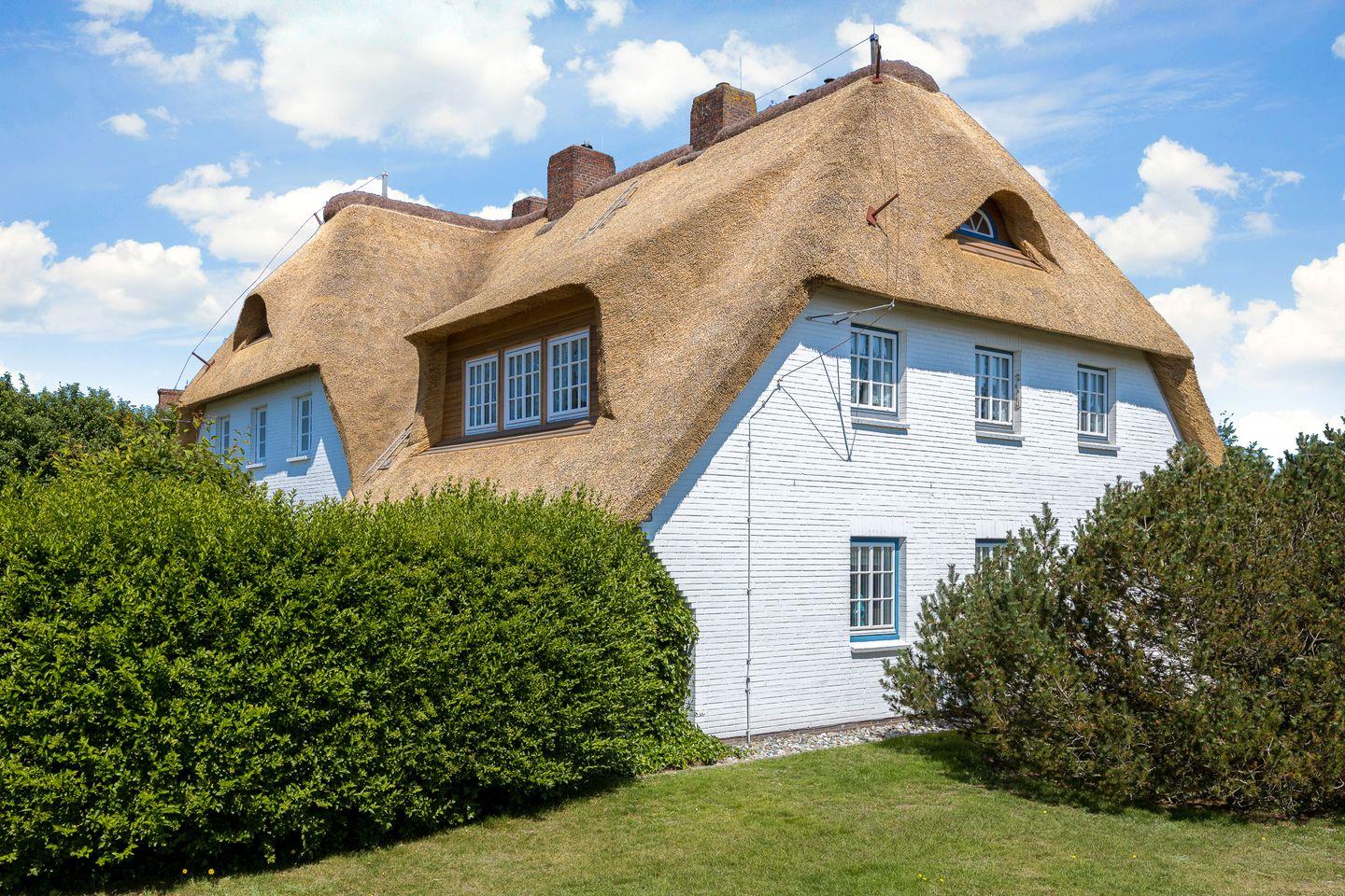 Die Ferienwohnung im Obergeschoß und ausgebautem Dachgeschoß in Südwestlage ist ca. 80 m² groß und bietet zwei bis vier Personen Geborgenheit. Das reetgedeckte Haus liegt vor dem "Süderhof" im Südwesten des Ortes auf einem rund 2000 Quadratmeter großen Grundstück, das von einem Friesenwall umgeben ist. Der Bereich im Obergeschoß ist komplett mit allergikerfreundlichem Boden versehen. Die Wohnung verfügt über modernen Komfort wie Flat-TV mit Digitalempfang, DVD und VCR, W-Lan, Stereoanlage mit CD-Spielern, Espressomaschine, Geschirrspüler, Cerankochfeld, Backofen und Mikrowelle. Im Keller des Hauses steht Ihnen gegen Gebühr eine Waschmaschine und Trockner zur Verfügung. Zur Wohnung gehört ein kleiner Platz mit einem Saison-Strandkorb (ca. April - Oktober )
