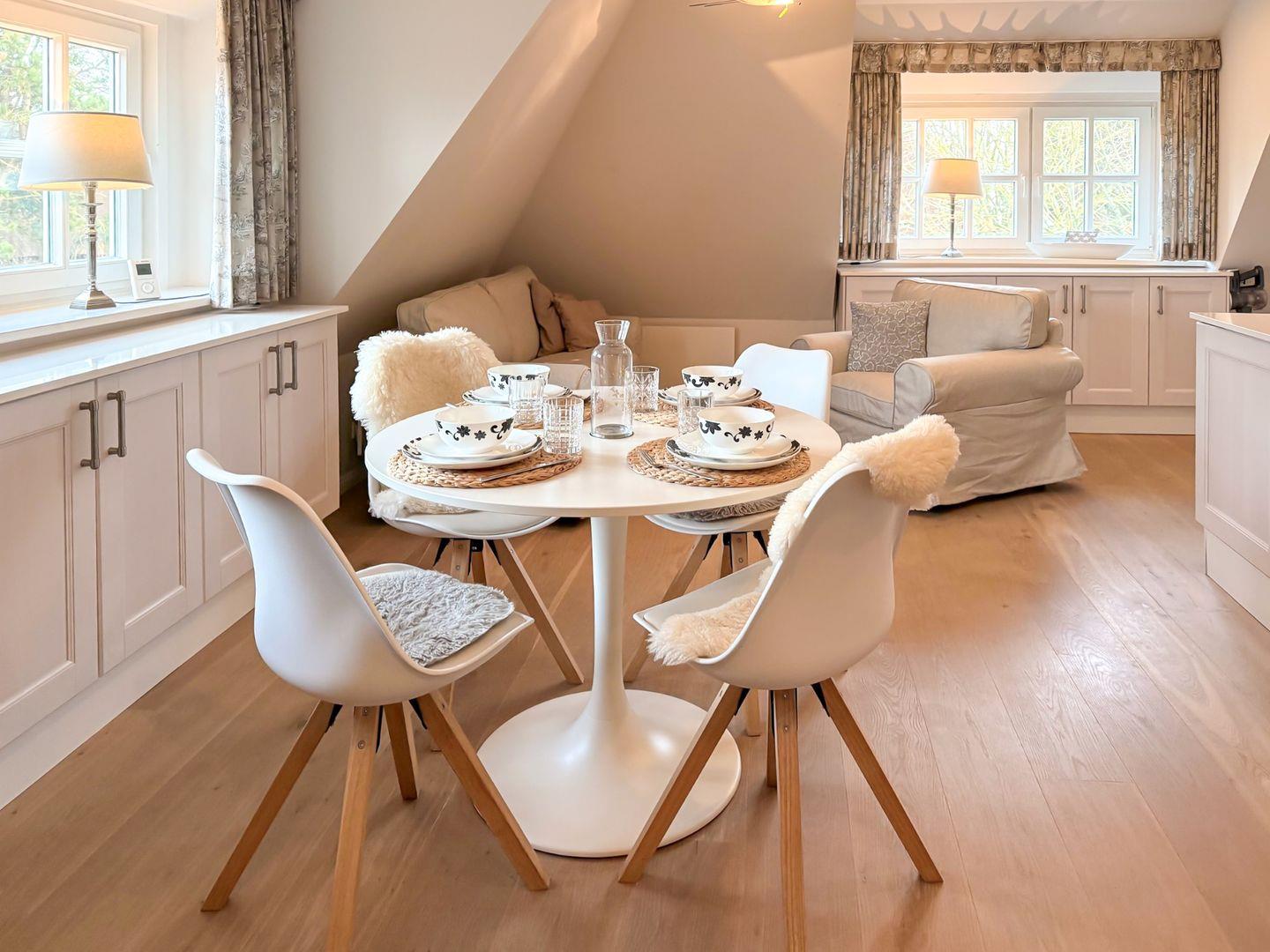Diese kleine Maisonettwohnung im Obergeschoß bietet mit ca. 43 qm Platz zum Erholen. Das reetgedeckte Haus liegt ruhig in einer Wohnparkanlage mit hohen Baumbestand und ist nur ca. 10 Gehminuten vom Wattenmeer entfernt. Durch helle Farben und modernes Mobiliar ist hier eine Wohlfühlatmosphäre für bis zu zwei Personen entstanden. Die Wohnung verfügt über Komfort wie Sauna ( Infrarot), Flat-TV mit Apple TV, Sonos-Bluetooth-Box, Radio, Cerankochfeld, Fußbodenheizung und Waschtrockner.