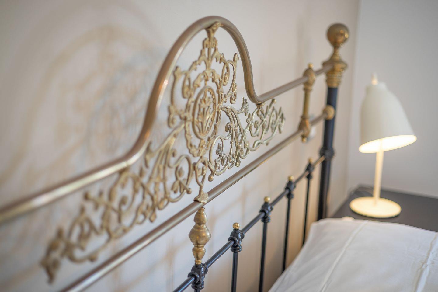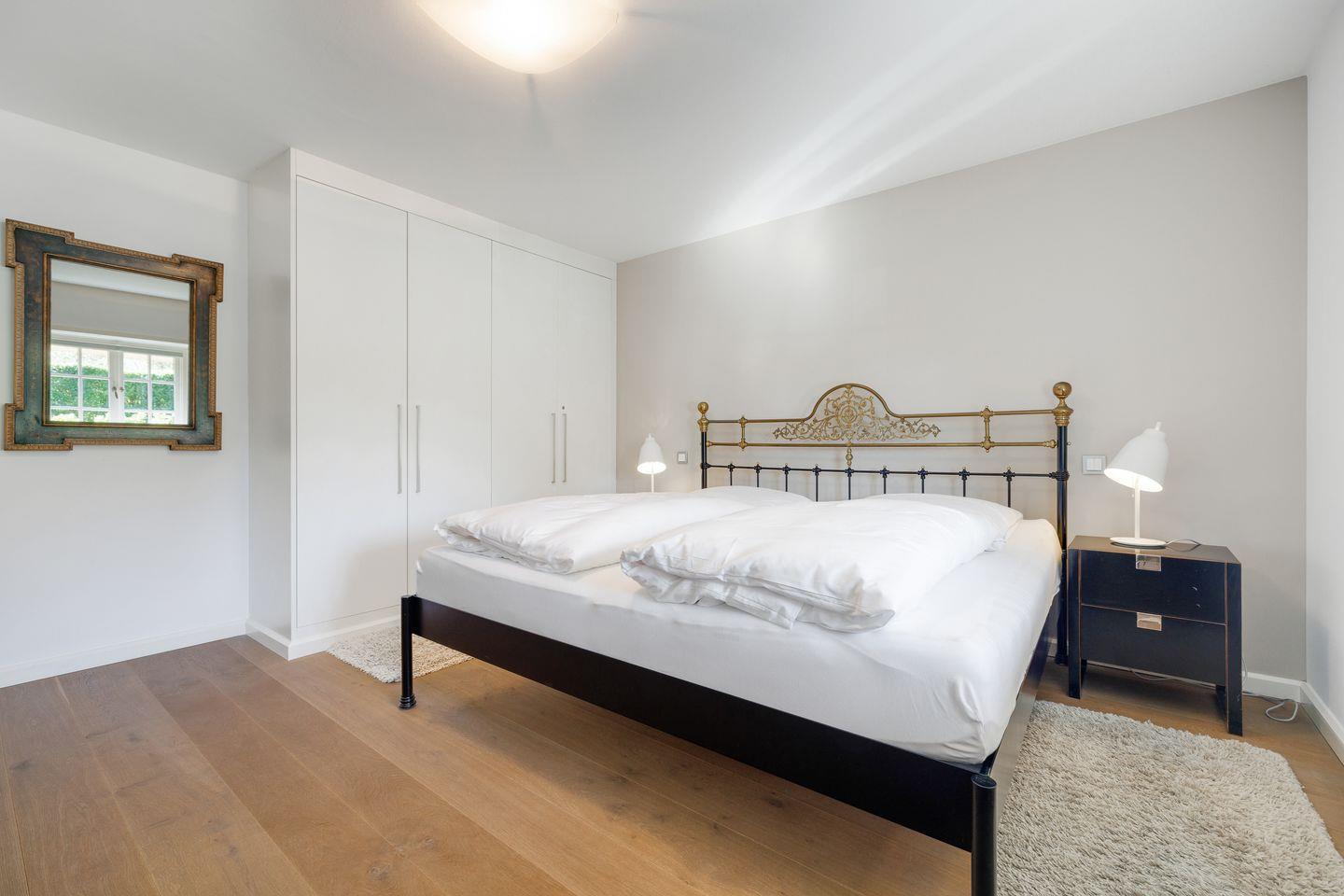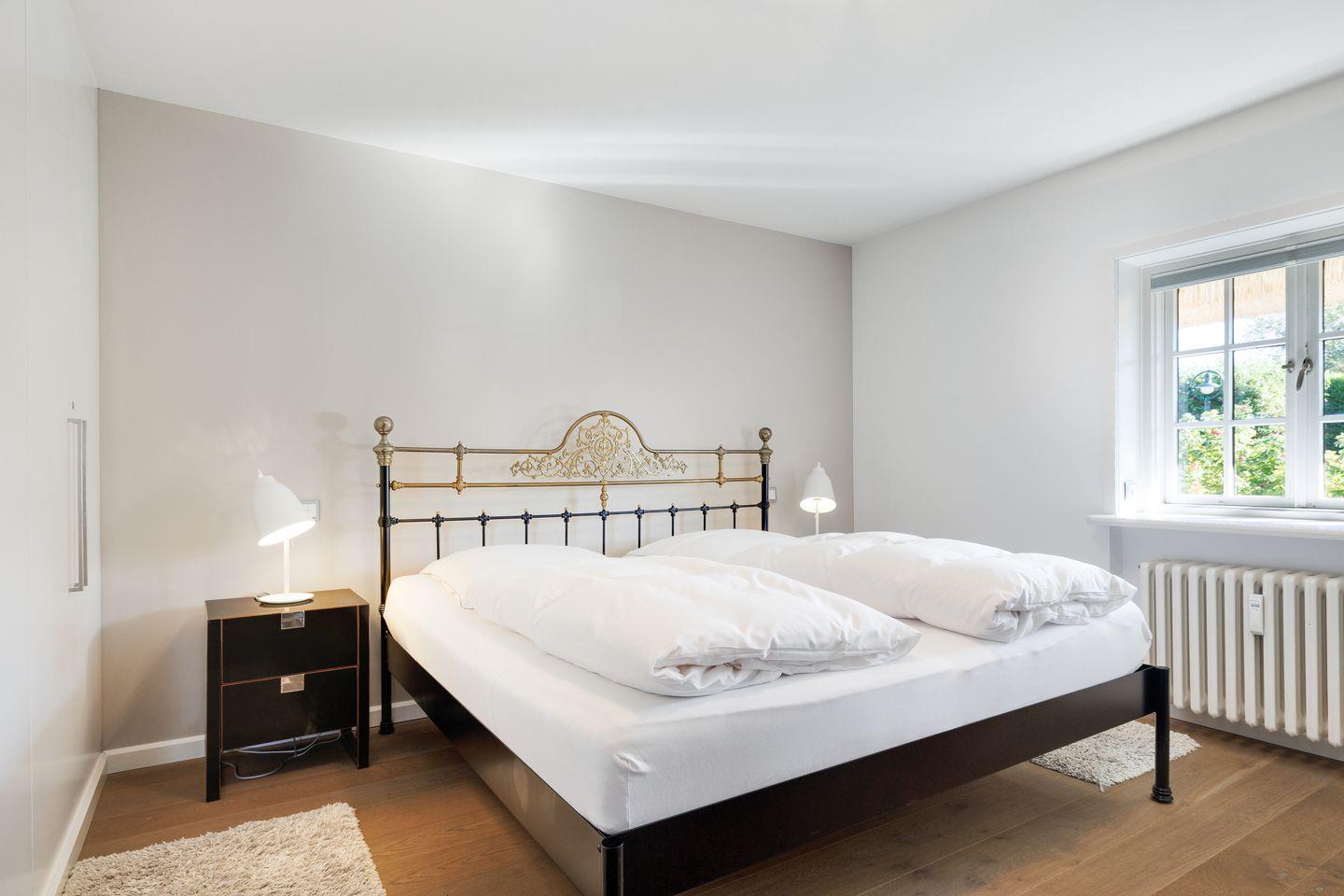 Schlafzimmer: geräumiger Schlafraum mit Doppelbett-Metall (2 Matratzen á 100 x 200 cm) und Einbauschrank