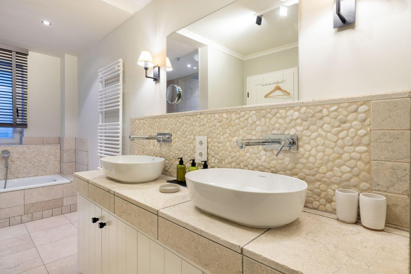 Vollbad mit Dusche / Badewanne / WC im Warftgeschoss, sowie ein weiteres Duschbad im OG