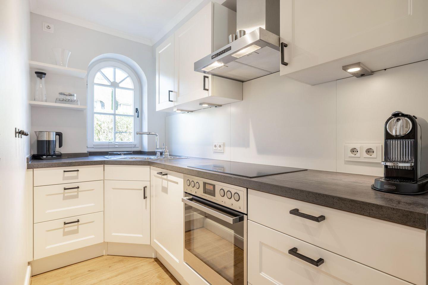 Küche mit Herd, Backofen, Geschirrspüler und Nespresso-Kaffeemaschine